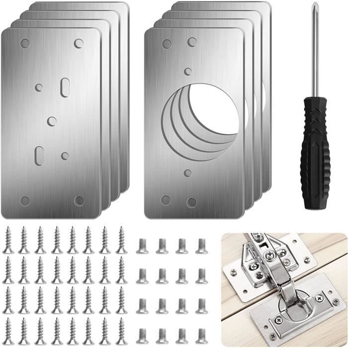 Kit de réparation de charnière de porte d'armoire, 1-3 pièces plaque de Plaques de réparation de charnières pratiques: - Les plaques de réparation de charnières en acier inoxydable peuvent vous aider efficacement à fixer les charnières et les panneaux de porte ensemble. - Vous pouvez utiliser la plaque de réparation de charnière pour les armoires, les armoires de cuisine, les tiroirs, les commodes, les boîtes en bois, les boîtes à outils, etc. C’est une pièce très utile pour vos réparations de meubles! Panneau De Réparation Charnière Plaque De Réparation De Charnière En Acier Inoxydable - Plaque De Réparation Pour Armoire De Charnière Plate Nous vous fournissons également les vis et les tournevis dont vous avez besoin pour l’installation, de sorte que vous n’avez rien à acheter de plus. 【Ce que Vous Obtenez】 Nous vous fournissons 4 paires (8pcs) plaque de réparation de charnière pour armoires, 32 vis longues, 16 vis courtes et 1 tournevis. 【Large Application】 Le kit de réparation de charnières convient à la fixation de toutes sortes de meubles nécessitant des charnières, tels que des armoires, des armoires de cuisine, des tiroirs, des commodes, des boîtes en bois, des boîtes à outils, etc. Et la plaque de réparation de charnière recouvre la zone d’origine endommagée, donnant à vos armoires une meilleure apparence. Spécification: Quantité: 8 Pcs Matériel: acier inoxydable, fer Taille: 9 x 4., 7cm (espacement des trous voir photo) Tournevis: 14cm de long Vis: 1., 5cm, 1., 1cm de long Emballage Inclus: 8 Pcs (4 paires) Plaque de Réparation de Charnière 32 Pcs vis longues 16 Pcs vis courtes 1 Pcs Tournevis Kit de plaque de réparation de charnière d'armoire de quincaillerie de cuisine en acier... Il ne rouille pas, ne se casse pas facilement, ne se déforme pas et peut être utilisé pendant une longue période.