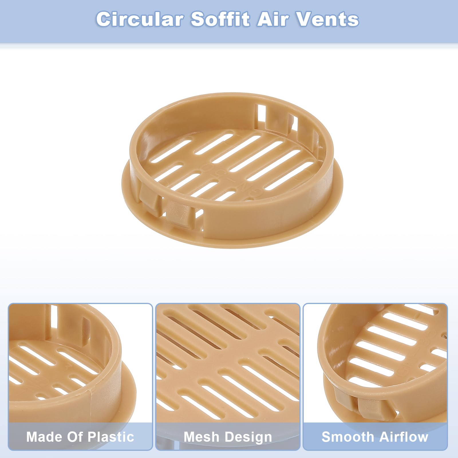 Le design en maille avec de multiples petites ouvertures d'échappement peut assurer la ventilation et la dissipation de chaleur. Elles conviennent aux bureaux, salles de conférence, auditoriums, salles de concert, chambres à coucher, cuisines, salles de bains, débarras et autres endroits nécessitant un flux d'air. Elle offre un flux d'air pratique et peut boucher la poussière, ce qui n'est pas facile à obstruer., 3., Facile à utiliser : Lors de l'installation, il suffit de pousser le couvercle dans le trou de montage, il restera fermement en place. Hililand Évent de soffite Ventilation cvc de persienne d'aération de Paquet de 4 évents de soffite de 4 pouces, couvercle d'aération rond avec moustiquaire intégrée... Grille Aeration Lot De 4 Grilles D'aération Rondes En Plastique Pour Persienne De Soffite Noir 7,6 C Grille Aération Ronde Sa bonne durabilité et sa capacité anti-vieillissement la rendent difficile à déformer, craquer ou décolorer lors d'une utilisation à long terme. Le nettoyage est simple, il suffit de retirer les grilles en plastique et de les nettoyer avec des outils de nettoyage. Elle offre un flux d'air pratique et peut boucher la poussière, ce qui n'est pas facile à obstruer. Le nettoyage est simple, il suffit de retirer les grilles en plastique et de les nettoyer avec des outils de nettoyage., 4., Large application : Les grilles de ventilation circulaires sont utilisées pour la ventilation, la perméabilité à l'air, la dissipation de chaleur et l'apport d'air frais. Facile à utiliser : Lors de l'installation, il suffit de pousser le couvercle dans le trou de montage, il restera fermement en place.