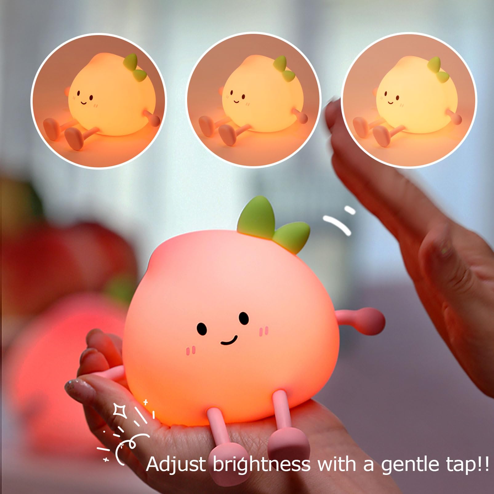 Plus qu'une simple lumière, cette veilleuse rose pêche est un compagnon réconfortant qui crée une atmosphère joyeuse, apaise les peurs et illumine n'importe quel espace. Le mode faible luminosité est idéal pour l'allaitement, le sommeil et les réveils nocturnes, tandis que le mode haute luminosité est idéal pour des activités comme le change, la lecture ou simplement pour éclairer votre espace. Légère et portable, elle peut être utilisée partout dans la maison ou même en déplacement. 【Rechargeable et Minuterie】cette veilleuse pêche est facilement rechargeable via USB sans fil et dispose d'une minuterie intégrée qui l'éteint automatiquement après 30 minutes, idéale pour l'allaitement nocturne ou les rituels du coucher. Son joli motif pêche d'un rose délicat s'intègre harmonieusement dans la chambre de n'importe quel enfant. En raison des différences entre les différents moniteurs, les images peuvent ne pas refléter la couleur réelle de l'article, merci ! LED Veilleuse pour enfant Rechargeable 8 couleurs Lampe en Silicone... Caractéristiques : Avec trois modes d'éclairage réglables, cette jolie veilleuse crée l'ambiance idéale pour tous les besoins, que ce soit pour jouer, lire ou dormir. 【3 Modes D'éclairage et Intensité Variable】avec trois niveaux de luminosité réglables et une fonction de gradation continue, cette jolie veilleuse pêche répond à tous vos besoins. Souple et facile à presser, elle reprend sa forme initiale après avoir été malaxée. Veilleuse Lampe rechargeable bébé, pêche veilleuse silicone souple, cadeau naissance fille garçon, décoration chambre 【Compagnon Émotionnel】Cette lampe LED multifonction en silicone souple apporte une ambiance chaleureuse aux chambres, bureaux ou tout espace en manque de chaleur et de gaieté. Veillez Sur Elle URAQT Veilleuse Bebe Silicone, Rechargeable Lampe Veilleuse Silicone Tactile Canard Avec Veilleuse Poire 【Silicone de Haute Qualité】fabriquée en silicone souple et sans danger pour les enfants, cette veilleuse rose est incassable. Résistante à la chaleur et sans produits chimiques nocifs, elle est idéale pour la peau sensible des enfants et les chambres de bébé. Idéale pour les chambres d'enfants, chaleureuse et lumineuse, elle est très appréciée des enfants. La veilleuse bébé pêche offre une lumière blanche chaude de 3000K avec 3 niveaux de luminosité et un mode RVB à 7 couleurs. Idéale pour l'allaitement, le sommeil et la lecture, elle crée une ambiance chaleureuse dans la chambre Avec sa batterie rechargeable et sa longue autonomie, cette lampe de chevet portable rechargeable offre une flexibilité maximale.