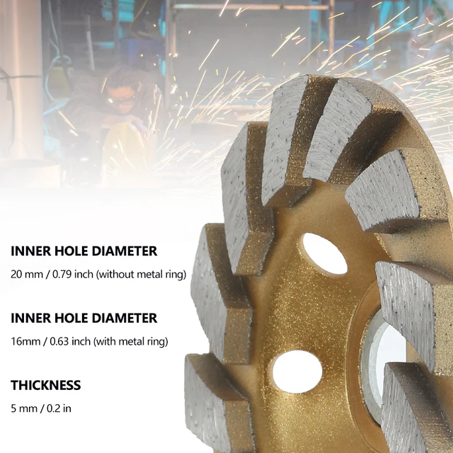 Choisissez la méthode en fonction de vos besoins. Diamètre : 125 mm, alésage 22,23 mm, épaisseur du segment : 5 mm, noyau en acier : 3 mm, grains : 40/50 ; vitesse maximale : 12 000 tr/min, vitesse recommandée : 7000 tr/min Assurez-vous que votre meuleuse prend en charge les dimensions standard de montage (diamètre intérieur de 22,23 mm ou 15,875 mm) pour un montage et une utilisation simples. Disque De Poncage Beton BGTEC Meule Diamant 115 Mm Turbo Row Matériaux de haute qualité : solide et durable, résistant à la rouille et à la corrosion, pas facile à déformer, fabriqué en acier traité thermiquement, noyau en acier solide de 3 mm et 5 mm d'épaisseur, haute concentration de diamants en 2 rangées par technologie frittée Large Applicabilité : Idéal pour pierre, granit, béton, marbre et maçonnerie. Conception à Faible Vibration : Assure un fonctionnement stable et réduit la fatigue des mains. Segment diamant style turbo pour un refroidissement efficace de l'air. Caractéristiques du produit Grande Durabilité : Fabriqué avec des particules de diamant premium, sa durée de vie est plus de trois fois supérieure à celle des meules standard. Peut-on utiliser cette meule d'abrasion pour le ponçage à sec et le ponçage à l'eau? Oui, cette meule d'abrasion diamantée est utilisable pour le ponçage à sec et à l'eau. Matériaux de haute qualité : solides et durables, haute concentration de diamants par technologie frittée. Oxyde De Cerium BGTEC Lot De 2 Meules Diamant 125 Mm Turbo Row Pour Meuleuse Disque Diamant Pour Meuleuse 125 Brillance et texture améliorées. Diamètre : 115 mm. Grain : 40/50. Matériau : alliage. Épaisseur de la lame : 3 mm. Épaisseur : 5 mm; Applications : pour meuler le marbre, le béton... Corps en acier traité thermiquement, noyau en acier robuste de 3 mm pour supporter des travaux difficiles ; profondeur de segment de 5 mm pour une longue durée de vie<br/Efficacité de ponçage rapide : la meule à béton diamant avec des segments de diamant plus grands expose plus de surface aux segments de diamant pour une coupe plus rapide. Entretien : Nettoyer régulièrement la meule d'abrasion pour enlever les débris et maintenir son tranchant. Efficacité de ponçage rapide : la meule à béton diamant avec des segments de diamant plus grands expose plus de surface aux segments de diamant pour une coupe plus rapide. Polyvalence : Utilisable à sec et à l'eau. Après le ponçage : Surface lisse et uniforme, bords exempts d'ébarbures, polis. Le ponçage à l'eau réduit la poussière et prolonge sa durée de vie, tandis que le ponçage à sec est plus rapide.