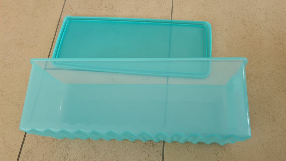 Conçu avec un système de ventilation unique pour garder les fruits et légumes entiers frais pendant une longue période. Les évents fonctionnent sur un système de valve à 3 voies : 2 orifices d'aération ouverts – coriandre, choux de Bruxelles, épinards, endives, pois (dans les goussets), brocolis, maïs sucré. Grâce à ses parois transparentes, le contenu peut être facilement vu dans le réfrigérateur chaque fois qu'un repas est préparé. Tupperware Frigo Smart vous aide à stocker les légumes et les fruits ronds dans le réfrigérateur. Les encoches en bas recueillent l'eau laissée par les légumes et les fruits, l'eau ne touche pas la surface alimentaire, augmentant ainsi leur durée de vie Principaux points forts · Marque. Tupperware · Couleur. Blanc · Matériau. Plastique · Caractéristique du matériau. Sans BPA · Capacité. 1,6 Litres · Dimensions... Boîtes Tupperware Tupperware Réfrigérateur Smart Medium 1.6l 1pc Boite De Conservation Alimentaire Les aérations aident à réguler la quantité de flux d'air à travers le récipient en fonction du type de légumes ou de fruits à conserver. Boîte VentilOfrais 6,1 L – TUPPERWARE FRANCE 1 ouverture d'aération, 1 fermé – respirateurs modérés – haricots, laitue, poireaux, carotte, haricots de soja, choux, chou-fleur, fenouil. Le bord intérieur du joint est conçu pour un nettoyage facile et les valves sont amovibles pour le lavage. 2 aérations fermées – respirateurs légers – champignons, radis, brininal, tomates, concombre, céleri, betterave, concombre