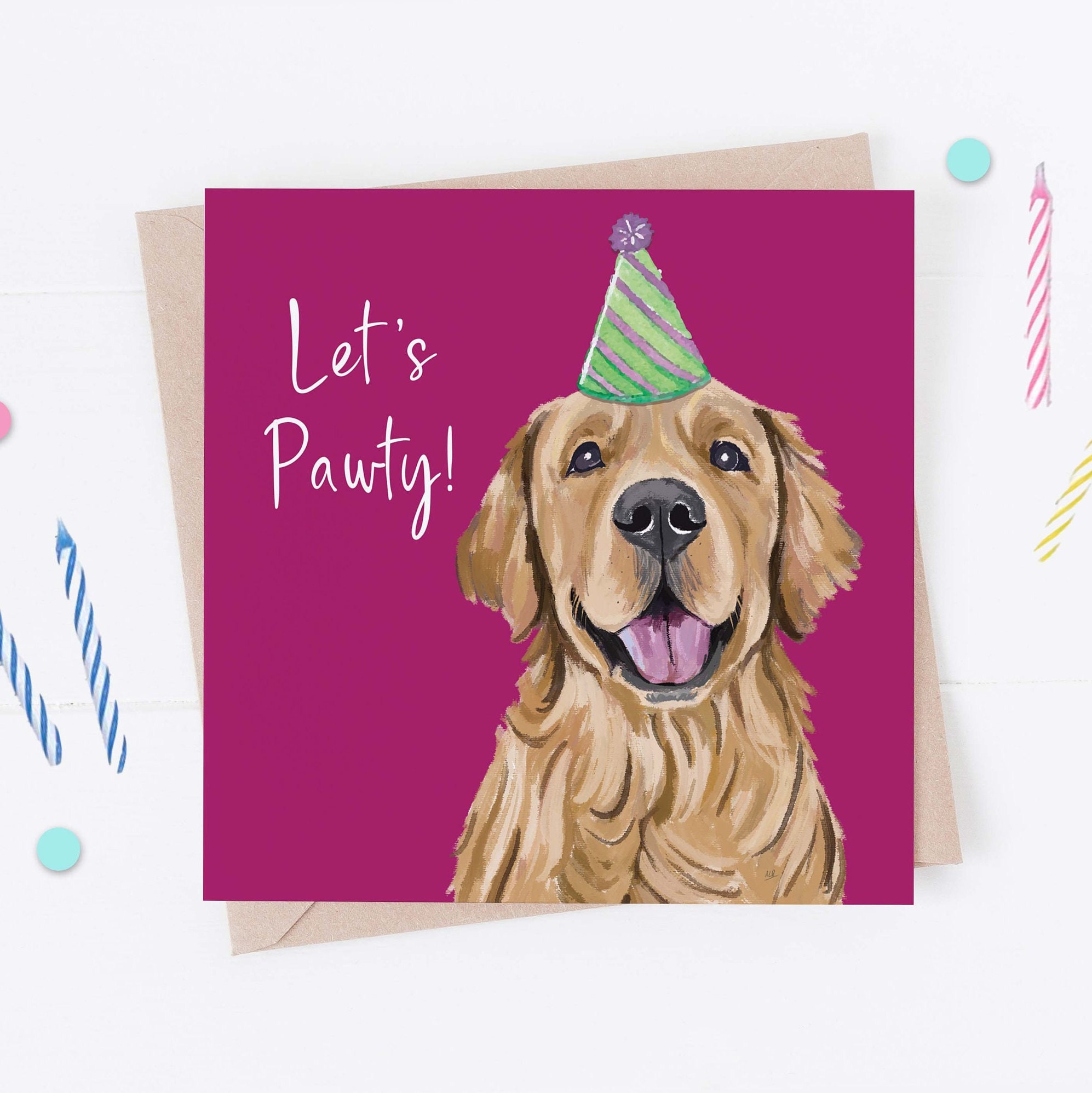 Carte de voeux d'anniversaire Golden Retriever / Carte Goldie du chien / Pour les toiletteurs, les vétérinaires et les amateurs de race - France Une carte de voeux avec un chien golden retriever sur le devant. Carte de voeux Golden retriever pour toutes les occasions. La carte est vierge à l'intérieur pour que votre message soit personnel. La carte est imprimée sur du papier de haute qualité de 350 g/m², beaucoup de mes clients encadrent les cartes. La carte mesure 15 cm de côté et est livrée avec une enveloppe recyclée kraft... Vecteurs Et Illustrations De Carte Anniversaire Chien En Téléchargement Maturi Carte d'anniversaire vierge avec photo de chien Golden Retriever, 15,5 x 15,5 cm : : Fournitures de bureauÀ propos de cet article Carte vierge et enveloppe : carte de vœux de qualité supérieure avec une image de haute qualité, associée à une enveloppe gratuite. Fabriqué au Royaume-Uni - Fabriqué avec amour dans le Nottinghamshire, Royaume-Uni. Carte épaisse de... Téléchargez cette photo Premium sur Carte de voeux vierge avec coeurs épingles sur fond rouge et rose Maquette avec espace de copie et explorez des millions de photos professionnelles sur Freepik.