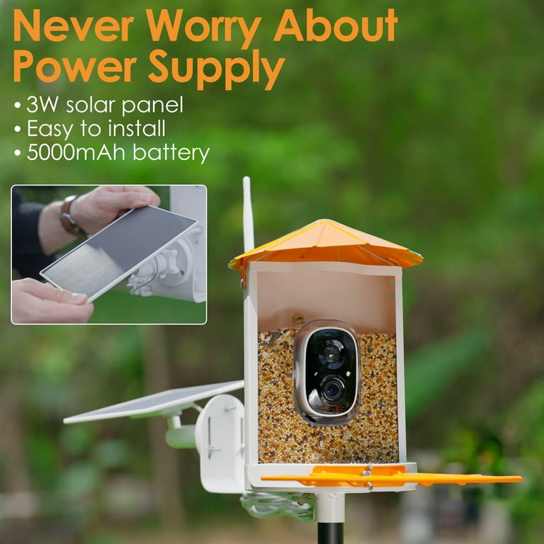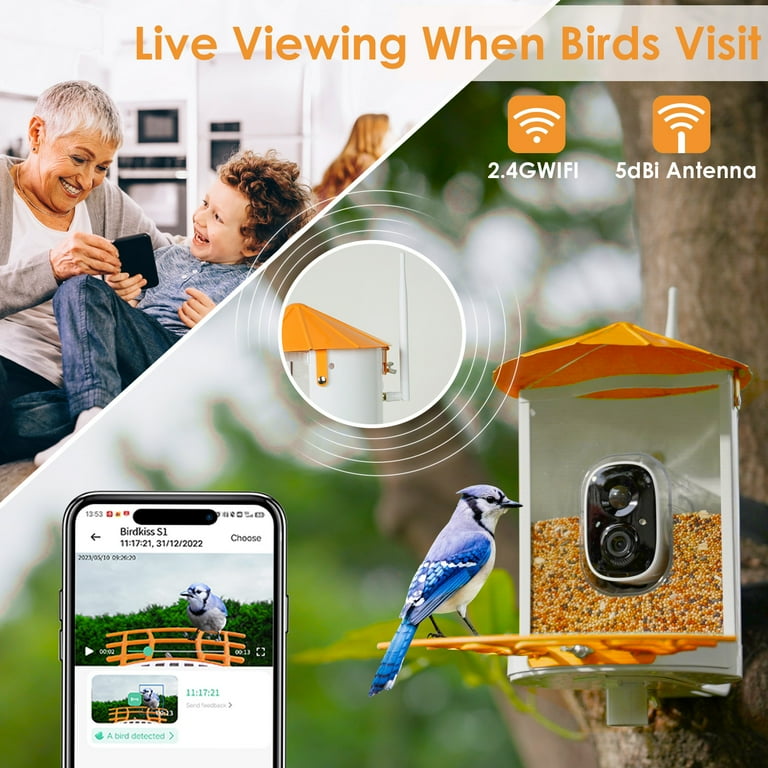 Le design étanche IP65 garde les graines sèches, et un grand récipient de 1,25 L signifie un remplissage moins fréquent. Une carte SD de 32 Go gratuite dans le colis. Pensez à la mangeoire Birdkiss avec caméra pour l'extérieur – un cadeau parfait pour observer les oiseaux avec des connexions plus étroites. Partagez des vidéos d'oiseaux captivantes sans effort avec les amoureux et les amis, tout en restant connecté grâce à cette mangeoire à oiseaux avec caméra Avec les options de partage, vous pouvez facilement vous connecter avec vos amis et votre famille ou même partager des vidéos en direct sur les réseaux sociaux. {b> <b}: découvrez des espèces d'oiseaux rares grâce à la mangeoire de nichoir avec caméra. L'antenne 5dBi assure une connexion Wi-Fi stable de 2,4 GHz (pas 5 GHz). Description du produit Birdkiss Mangeoire intelligente pour oiseaux avec caméra, caméra d'identification IA avec panneau solaire, capture automatique des vidéos d'oiseaux et notifications instantanées, cadeau idéal pour les ornithologues Avertissement De Sûreté [Avertissement de sécurité générale : installez en toute sécurité, évitez les aliments nocifs, suivez les directives d'installation électrique et tenez compte de l'impact environnemental., ] Cadeau parfait pour les amoureux de la nature, la famille et comme cadeau de pendaison de crémaillère. Vous pouvez choisir de vous abonner à l'un de nos forfaits de services cloud après votre essai gratuit de 30 jours. Surveillance en temps réel : la mangeoire à oiseaux intelligente Birdkiss avec caméra peut capturer et identifier automatiquement tous les oiseaux à venir, et... Pour toute question, n'hésitez pas à contacter notre équipe d'assistance officielle. Smart Bird Feeder Pole ® Mangeoire à Oiseaux Intelligente Originale Avec Caméra à énergie Solaire, Caméra AI Haute Résolution Pour De Belles Photos Rapprochées Et Une Expérience Unique D Bird Buddy Il peut également chasser les écureuils avec sa lampe de poche, sa sirène ou ses commandes vocales via le microphone. Recevez des notifications instantanées et regardez des émissions en direct n'importe où. Certification FCC, CE, RoHS. L'IA leader de l'industrie identifie avec précision plus de 10 000 espèces d'oiseaux dans le monde. Birdkiss Mangeoire à oiseaux avec caméra intelligente