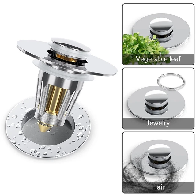 Avec son design ergonomique, il est facile à installer et à enlever. YapitHome Bouchon Lavabo Pop Up,Bouchon de Vidange Lavabo,Bouchon d'eau Ajustement parfait pour toutes les piscines de la maison : avec un diamètre de 7,5 à 8,7 cm, ce bouchon de vidange de lavabo est universel et convient aux trous... Mécanisme pop-up facile à utiliser : le bouchon pop-up intégré permet un changement facile entre la stagnation d'eau et le mode passoire. Ce bouchon s'adapte avec précision à votre évier et assure une étanchéité dense et fiable sans fuites gênantes. Grâce à sa construction robuste, il est durable et résistant aux moisissures et aux bactéries. Robuste et durable : le bouchon d'évier FlyHigh combine un corps en acier inoxydable robuste avec un fond en ABS épaissi, ce qui le rend résistant à la rouille, aux rayures et à l'usure – Parfait pour une utilisation quotidienne en cuisine. Panier anti-obstruction pour tuyaux propres : le panier en ABS résistant à la chaleur filtre efficacement les résidus alimentaires et protège vos canalisations contre les blocages. Investissez dans cet accessoire de salle de bain pratique et profitez d'un plaisir de baignade inaltéré. Multifonction 3 en 1 : notre design innovant allie rétention d'eau, tamisage efficace et élimination fiable des odeurs dans un produit compact – empêche les blocages et les odeurs désagréables dans votre cuisine. Informations sur le produit Bouchon universel gris pour évier, lavabo, bidet ou baignoire, 36 mm à 58 mm Caractéristiques et avantages Le bouchon est livré avec 3 anneaux qui se superposent. En fonction de la taille de la grille, un ou plusieurs anneaux sont conservés ou supprimés. Garantie : 2 ans Bouche Evier Homevacious Bouchon De Vidange Pop-up Pour Lavabo De Salle De Bain De 3,8 Cm Avec Trop-plein Pour Trou D'évier Standard De 3,8 Cm à 4,4 Cm En Nickel Brossé Bouchon Pour Baignoire Grâce aux ouvertures bien pensées, les déchets peuvent être éliminés rapidement et de manière hygiénique.