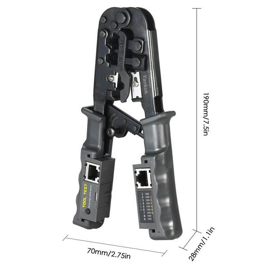 Pince à sertir modulaire tout-en-un : installation rapide et fiable du connecteur à sertir modulaire pour les applications vocales et de données. Contenu du paquet : - Contenu : 1 pince à sertir modulaire RJ45 RJ12 RJ11, 1 mini pince à dénuder et 15 connecteurs CAT6., En raison de ses multiples fonctionnalités, de sa compatibilité avec presque tous les types de câbles et de connecteurs réseau, et d'un prix abordable, tous ensemble font de cet outil réseau tout-en-un un choix de premier ordre aujourd'hui. Yankok [Pince à sertir modulaire RJ45 RJ12 RJ11] pour Pince à sertir modulaire au design compact : 2/3 de la taille des pinces à sertir traditionnelles, opération à une main avec noyau en acier enduit d'oxyde noir résistant à la rouille. La poignée ergonomique mate à ressort remet l'outil en position prête à la fin du cycle pour vous aider à économiser du temps et des efforts La taille compacte tient dans n'importe quelle poche, pochette à outils et coffre. Pince à Sertir Cable Rj6 Yankok YKCR008 Pince à Sertir Compacte Pour Câble 6P 8P RJ11 Pince à Sertir Rj11 Sertissage RJ45 Cat 3/4/5/5e/6 (8x8) (8P8C), RJ12 6 positions (6x6) (6P6C), RJ11 4 positions (6x4) (6P4C) et RJ11 2 positions (6x2) (6P2C). La poignée ergonomique mate à ressort remet l'outil en position prête à la fin du cycle pour vous aider à économiser du temps et des efforts. Remarque : ne convient pas pour une utilisation sur des prises de style AMP/TYCO et ne sertit pas les connecteurs traversants et blindés. COSSE ELECTRIQUE,LXZ922027B--pince à sertir professionnelle RJ45, outil...