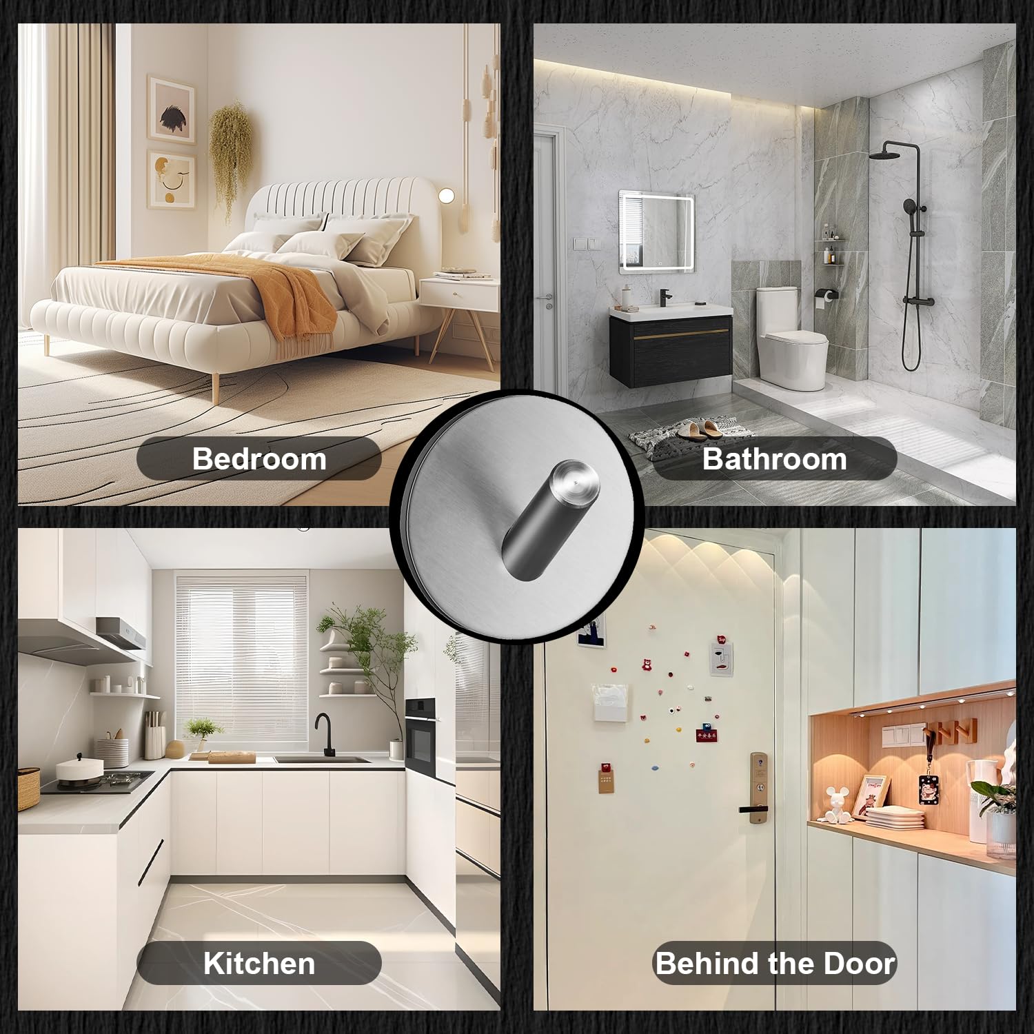 Haute Capacite De Respiration Du Poids : le support en mousse pe de l'adhésif autocollant crochet isole la surface adhésive de l'air, et grâce à sa propre force adhésive et à la pression atmosphérique, il peut supporter jusqu'à 5 kg de poids, ce qui convient aux salles de bains, aux salons, aux chambres à coucher, aux cuisines et bien plus encore. pour une meilleure adhérence, il est recommandé d'attendre 24 heures avant d'utiliser les crochets. SISYS Crochet Adhesif Mural, 6 Pièces 3M Crochet Mural Crochet Porte Serviette pour Salles de... convient pour suspendre des serviettes, des peignoirs, des ustensiles de cuisine, des sacs, des clés et d'autres objets. Liste des colis 2 : 4×Crochets adhésifs, Caractéristiques 1., Le dos de la serviette au crochet est constitué d'un adhésif puissant, qui peut supporter un poids allant jusqu'à 5 kg., 2., Le crochet adhésif mural est fabriqué en acier inoxydable 304 de haute qualité, avec une résistance élevée à l'usure et une bonne résistance à la corrosion., 3., Les crochets pour serviettes sont faciles à installer, pas besoin de colle, de perçage ou de vis, il suffit de décoller la couche protectrice au dos et de la coller sur une surface lisse., 4., Le crochet autocollant adhesif a un design simple et à la mode, qui peut s'adapter à différents styles de maison., 5., Patère murale adhésive pour la salle de bain, la cuisine, le salon, la chambre à coucher, etc. Etancheite Et Resistance A La Corrosion : les adhésifs muraux au crochet sont fabriqués en acier inoxydable 304 de haute qualité, avec une résistance élevée à l'abrasion et une bonne résistance à la corrosion, même dans les environnements humides, ils peuvent conserver leur éclat pendant longtemps et ne sont pas faciles à rouiller, et ils sont faciles à nettoyer, il suffit de les essuyer délicatement avec un chiffon humide. Paramètres Matériau : Acier inoxydable SUS304, Couleur 1 : Noir, Couleur 2 : Argent, Forme : Rond Crochet Adhesif Mural 4 Pièces, Acier Inox Crochet Serviette Salle De Bain, Pour Cuisine, Salon Crochet étanche à l'eau Grâce à la couche adhésive, ce crochet adhère même dans les environnements chauds et humides comme les salles de bain et les cuisines. Les crochets muraux peuvent tre utilis s pour suspendre des serviettes, des chapeaux, des cl s, des ustensiles de cuisine ou des d corations pour r pondre divers besoins. Le paquet comprend 2 crochets argent Installation Facile Aucun per age n'est n cessaire pour l'installation, veuillez essuyer le mur avant utilisation, apr s avoir accroch les crochets muraux, veuillez attendre 24 heures avant de les accrocher pour garantir une meilleure adh rence. Acier inoxydable SUS304 Ce crochet autocollant en acier inoxydable est plus solide et plus durable que les crochets en plastique traditionnels et permet de suspendre vos objets de manière plus sûre. Face arrière : Adhésif mousse PE, diamètre : 4,5cm essuyez le mur avant utilisation, puis décollez la couche protectrice au dos du crochet et collez-le sur une surface lisse. pour suspendre des serviettes, des peignoirs, des sacs, des chapeaux, des clés et d'autres objets. Patere Salle De Bain Sans Percage 2 Pièces Crochet Adhesif Mural, Crochet Adhésifs De Salle De Bains Crochet 3m