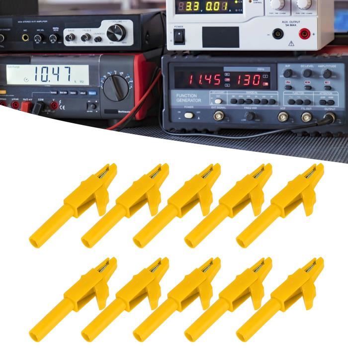 Fdit pince isolée de test électrique Pince Crocodile Isolée Pince de Test Jack 4mm Ouverture 5mm... Un boîtier en plastique isolé vous protège des blessures. Il est idéal pour les mains de soudage de bricolage, les outils de soudage domestiques et les outils de test électrique. Jeu de pinces de test électrique DRFEIFY - 10 pièces 10mm - 20A/1000V - prise banane XU010 Pinces Crocodiles EJ.life Pince De Test De Sécurité P2008 10PCS Isolation Métallique Crocodile Clips Accessoires Pince Crocodile Electrique HAUTE PERFORMANCE: Fabriqué à partir de matériaux métalliques de , a une bonne conductivité électrique et la est nickelée, ce qui la rend lisse ns endommager les fils. Ils ont une force de serrage élevée et peuvent être utilisés pennt longtemps ns se déformer. RESSORT : Chaque pince avec un ressort épais a une bonne force de morsure solide. Il est idéal pour les mains de souge de bricolage, les outils de souge domestiques et les outils de test électrique. EMBALLAGE: Ce kit de pinces contient 10 pinces de 5 couleurs différentes, différentes couleurs facilitent la distinction. GOO pince de test électrique 10 pièces 10mm pinces de batterie 20A/1000V pinces de Test... ACCESSOIRES UNIVERSELS : Cette pince isolée est polyvalente et convient à la maison et à la voiture.