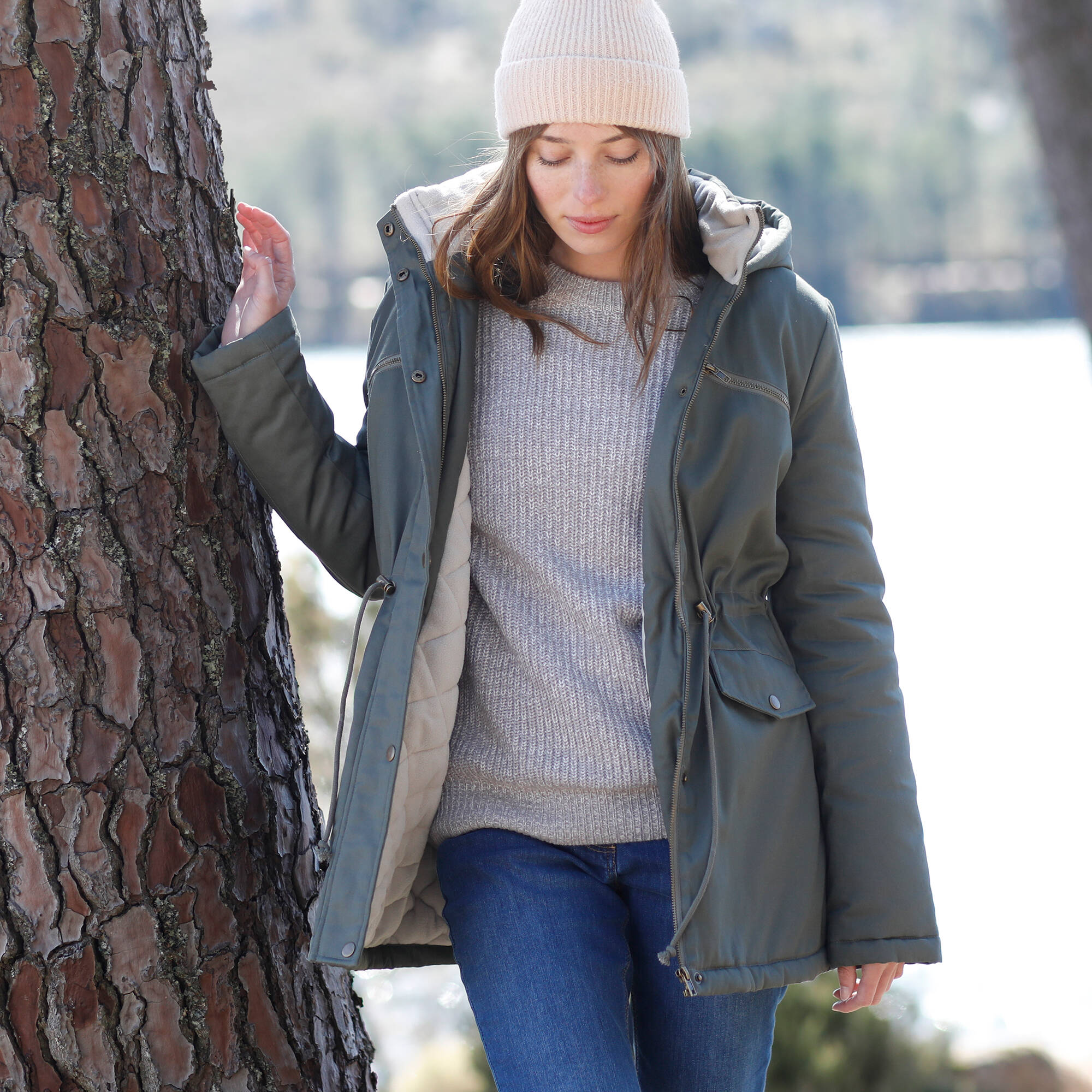 Manteau sweat pour femme avec fermeture éclair et capuche cachée - Longue veste de survêtement en forme de parka - Coupe légèrement cintrée - Doublure polaire doublée d'une fermeture éclair haute fermée - Protection contre le vent - 2 poches avec application zippée - Motif ancre - Design maritime - Composition : 65 % coton, 35 % polyester - Tailles au choix : M L XL 2XL Manteau Chaud Femme Parka Femme A Capuche Double Polaire Epais Chaud Taille Elastiquee Couleur Unie Bleu Fonce Parka Femme Habillé Coupe légèrement cintrée La parka pour femme, la star des manteaux On ne présente plus l'intemporelle parka pour femme ! Ce manteau à mi-chemin entre le trench et la doudoune combine parfaitement chaleur, style et douceur réconfortante. L'emblématique parka se décline en de nombreux coloris tels que le kaki, le noir, le bleu marine et le marron. Grâce à sa coupe cintrée et sa capuche en fausse fourrure, la... Veste En Polaire Femme VIN TE Veste De Survêtement à Capuche épaisse Doublée En Fourrure Polaire Unie Ou Avec Motif Ancre M à 3XL, Rose Fluo 59, L Veste Polaire Capuche Femme Restez au chaud avec nos parkas pour femme ! Pour affronter les températures hivernales avec style et confort, optez pour une parka femme doublée en polaire. Cette veste chaude et résistante est idéale pour vous protéger du froid tout en restant tendance. Dotée d'une doublure en polaire douce et moelleuse, elle vous offre une chaleur optimale lors des journées les plus froides Intérieur gratté moelleux - Doublure polaire doublée, Motif ancre Veste de survêtement pour femme