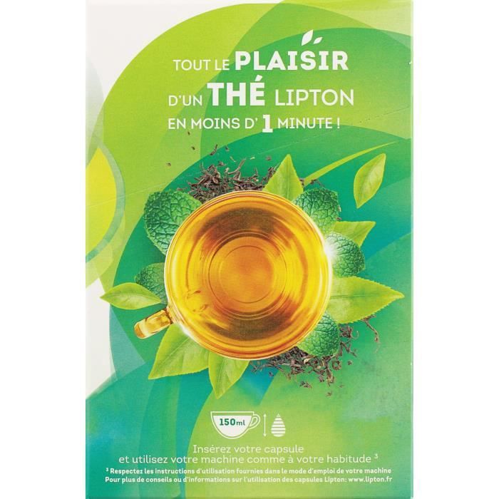 Découvrez le pack découverte Thés et infusion : 3 boîtes de 10 capsules compatibles avec les machines Nespresso* Original. Idéal pour varier les plaisirs, cet assortiment associe un thé noir Fruits Rouges aux notes sucrées et acidulées, un thé vert Menthe Marocaine intense et rafraîchissant, et une infusion Verveine Menthe douce et sans théine, parfaite pour une pause détente... quot;Profitez de tout le parfum et le goût d'un thé vert aromatisé dans un format capsule pratique grâce aux 10 capsules de Thé Vert Marrakech Mint Lipton®. Certifié PEFC, le carton de cette boîte est issu de forêts gérées durablement qui n’a aucun lien avec le groupe Unilever et les sociétés du groupe Unilever. Gagnez du temps en réalisant votre tisane en quelques secondes grâce à votre machine habituelle. 20 capsules de thé vert vert marrakech Mint Lipton, 20 capsules d'infusion verveine menthe Lipton Avertissement De Sûreté Ce produit peut ne pas convenir à tout le monde, en particulier à ceux qui ont des problèmes digestifs. La totalité du thé Lipton provient de plantations vérifiées Rainforest Alliance pour un thé plus respectueux des cultivateurs et de l’environnement. Description du produit Apporte de la brillance, facilite le coiffage et donne du mouvement. Lipton lance des dosettes de thé compatibles Laissez-vous tenter par la fraicheur, la puissance et les vertus antyoxidante de la menthe pour un moment de gourmandise à la maison. Reconnue pour ses vertues apaisantes, la verveine vous aidera en période de stress. Le soir, l'infusion Verveine Menthe Lipton favorisera la digestion et le repos. Lipton recycle ses capsules en partenariat avec TerraCycle, les capsules sont recyclées. Certifié PEFC, le carton de cette boîte est issu de forêts gérées durablement. Tout le savoir-faire de Sir Thomas Lipton se décline dans des capsules de thés et d'infusions uniques et savoureuses Ce thé capsules vous permet de préparer votre boisson chaude de façon simple et rapide. 100% des feuilles de thé utilisées dans nos capsules sont issues de l’agriculture durable, cultivées dans des plantations vérifiées Rainforest Alliance Les infusions Lipton sont compatibles avec les machines Nespresso. Capsule The Lipton Assortiment De 3 Thés En Capsules Compatibles Special T Capsules