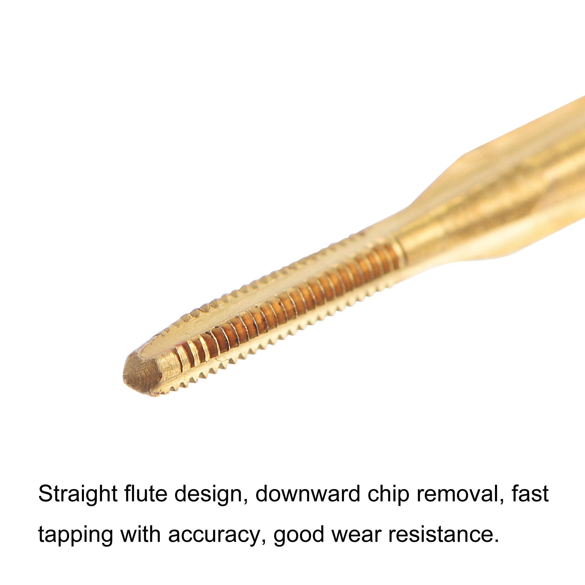 La force doit être uniforme lors des opérations de taraudage., 3., Percez d'abord le trou avec une perceuse hélicoïdale, puis utilisez le taraudage. Convient pour le traitement de trous traversants ou de trous peu profonds. Conseils : le robinet de machine est utilisé avec des perceuses, des machines à tarauder/CNC/fraiseuses. Non recommandé pour le taraudage manuel et électrique. Plus la dureté est élevée, plus la vitesse est lente. Percez d'abord les trous avec un foret hélicoïdal, puis tapotez avec un taraud Ajoutez de l'huile de taraudage appropriée pour des filetages internes de qualité supérieure et des robinets plus durables. Caractéristiques : Nom du produit : taraud métrique Matériau : acier rapide HSS, revêtement Ti., Précision : H2., Taille du filetage : M1,4 x 0,3., Largeur de la tige : 2 mm. L'angle de taraudage doit être vertical de 90 degrés et rester stable., 4., La profondeur de taraudage ne doit pas dépasser 1,5 fois le diamètre du robinet : par exemple : diamètre de M5 x 0,8 environ 5 mm, la profondeur ne doit pas dépasser 7,5 mm. Caractéristiques : 3 cannelures droites sont rectifiées pour fournir un retrait rapide des copeaux pour un filetage efficace. Tarauds de machine utilisés avec les perceuses, taraudeuses, machines automatiques, centres d'usinage, CNC, fraiseuses, non recommandés pour taraudage manuel et électrique. Vitesse rapide avec petit couple, vitesse lente avec couple élevé. Parfait pour tarauder l'acier inoxydable, l'acier allié, le cuivre, l'aluminium, etc. Il est fabriqué en ajoutant 5 % à 8 % de cobalt à l'acier rapide à... Vitesse d'avance recommandée : acier ordinaire : 6-15 m/min ; matériau en acier plus dur : 5-10 m/min ; acier inoxydable : 2-7 m/min ; fonte : 8-10 m/min. Sourcing Map Lot De 2 Tarauds Métriques M1,4 X 0,3 Avec Revêtement Plus la dureté est élevée, plus la vitesse est lente. Les mini robinets métriques sont principalement utilisés pour les horloges, les montres, le bois de faible dureté et le traitement des trous métalliques souples. Convient à une large gamme d'applications. Un ajout approprié de liquide de refroidissement (par exemple, de l'eau) peut prolonger la durée de vie lors du taraudage., 2., Veuillez contrôler la vitesse en fonction de la dureté du matériau. sourcing map Taraud de filetage M12 x 0,5, métrique à gauche pour