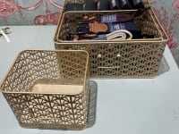 Paniers en métal doré pour ranger vos plaids, joutas, linge, chaussons. Grande contenance, corbeilles adaptées à votre rangement... Matériau : fer forgé., Couleur : doré. Taille L : environ 24,5 x 16,5 x 6,5 cm. 7 Maille Boîte De Rangement Pliable Caisse De Rangement Armoire Pliante Panier De Rangement Gifi VIFERR Panier De Rangement En Fer Doré, Panier De Rangement En Maille Métallique, Panier De Rangement Simple Polyvalent, Organisateur De Multifonctions Pour Salle De Bain Bureau à Domicile Panier Rangement Doré Contenu : 1 panier de rangement. Solution de rangement polyvalente : convient à tous les types de rangement, peut être utilisé dans de nombreux endroits, tels que le bureau, le salon, la salle de bain, etc. Avec son beau processus de placage et son aspect exquis, il ajoute une touche d'élégance et de fonctionnalité. Poids approximatif : 149 g ~ 266 g. Taille S : environ 17 x 12 x 6 cm. Boîte de rangement - SALUTUYA - Soutiens-gorge en maille - 11 cellules... Taille : L, S (facultatif).