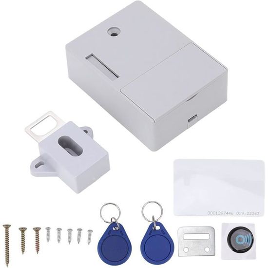 Lorsque la fonction d'ouverture normale de batterie faible est activée, le verrou de la porte ne se verrouille pas après le déverrouillage avec une batterie faible. Vous devez remplacer la batterie pour utiliser à nouveau ce verrou. 3) La quantité maximale de cartes manager est de 5., (Inclure la première carte manager) 4) Les cartes gestionnaires sont utilisées pour ajouter, supprimer, configurer et déverrouiller., 4., Ajouter une carte utilisateur : 1) Lisez la , Comment utiliser: 1., Réinitialiser aux paramètres d'usine : Appuyez sur le bouton pendant environ 2 secondes et le buzzer retentira une fois. Serrure d'Armoire RFID - YOSOO - Conception sans trou - Carte RFID Électronique - Plastique ABS Spécifications :Matériau : ABSBatterie : pile alcaline AAA 1,5 V x 4 (livrée sans batterie)Courant statique : courant de fonctionnement : norme de carte : M1, NFC Capacité de la carte utilisateur : 18Température de fonctionnement : -10 ℃-60 ℃Humidité de fonctionnement : 10 % RH-90 % RHListe des paquets :1 x armoire électronique RFID Serrure1 x tête de verrouillage1 x accessoire 9 x vis1 x autocollant 1 x carte capteur 1 x manuel 7., Indicateur de batterie faible1). (La valeur par défaut est activée)7., Indicateur de batterie faible 1). Plus sûr et plus pratique : s'ouvre sans toucher la porte de l'armoire, avec une carte RFID, une carte maître peut être réglée pour ouvrir plusieurs... Cette serrure d'armoire de bricolage a une large gamme d'applications et convient pour verrouiller des armoires, des tiroirs, des armoires, des placards, des armoires de rangement, des étuis à armes à feu, etc., 3., Carte de gestionnaire : 1) La première carte gestionnaire peut être définie directement dans l'état par défaut. Conception sans trou : cette serrure de tiroir d'armoire est conçue avec une conception sans trou, pas besoin de percer des trous, ce qui la rend très facile à installer et ne laisse aucune trace après l'avoir retirée. Cette serrure électronique pour armoire a un design invisible, montée à l'intérieur de l'armoire, pas besoin de toucher pour , 5., Ajouter une carte utilisateur : Lisez la carte du gestionnaire 5 fois et attendez 5 secondes, puis sonnez « Di Di Di Di Di » et toutes les cartes utilisateur seront supprimées., 6., Ouverture normale lorsque la batterie est faible Lisez la carte du gestionnaire 9 fois, Di » indique que cette fonction est désactivée et « Di Di » indique que la fonction est activée. À ce stade, toutes les cartes sont effacées et réinitialisées aux paramètres d'usine., 2., Double mode : Appuyez sur le bouton pendant environ 2 secondes et le buzzer retentira une fois. Ce verrou caché convient aux armoires, tiroirs, boîtes de rangement, etc. Il assurera la protection de vos objets. Tous les produits vendus par Leroy Merlin et par les vendeurs bénéficient de la garantie légale de conformité de 2 ans à compter de leur délivrance Kit De Serrure Rfid Verrous, Serrure D'Armoire, Serrure Électronique D'Armoire 2 Modes De Déverrouillage Serrure D Serrure Rfid Pour Tiroir Cette serrure électronique RFID est programmable et vous pouvez réinitialiser, ajouter ou supprimer vous-même des cartes-clés.