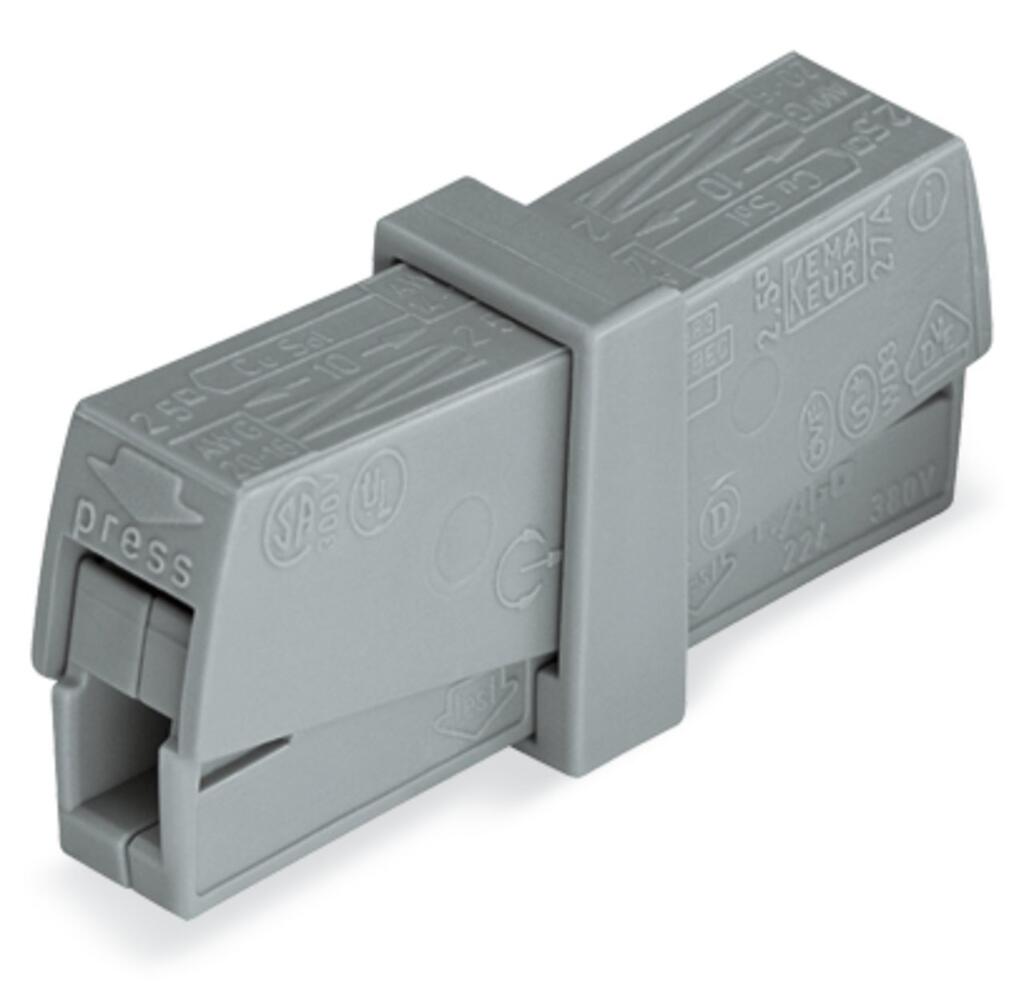 La série 224 de WAGO est le terminal d'alimentation compact pour une utilisation dans les lumières, les entraînements, les commandes, la ventilation et d'autres applications. Cet article utilise la technologie PUSH WIRE® ainsi que CAGE CLAMP®. La manière la plus rapide de brancher un conducteur est notre borne enfichable PUSH WIRE® éprouvée. Ce type de connexion utilise la résistance au pliage du conducteur pour surmonter la force de serrage du contact à ressort Domaines d'application du 224 les séries sont: moteurs de stores vénitiens, volets roulants ou stores, ventilateurs de fenêtres ou de salles de bains, commandes de chaudières, raccordement fixe d'appareils électriques avec câbles de raccordement flexibles, pompes de circulation, etc. Wago S221 Borne Pour Luminaire Wago 2,5 Mm² 15 Pièces Wago Fil Souple Manipulation facile et sans outils WAGO Borne Pour Luminaires, 2,5 Mm, 105°, Gris · Remboursement pendant 3 ans de votre achat sous forme d'avoir · Prise en charge immédiate par le SAV DARTY... 260-106 | Borne de raccordement WAGO 260, 1.5mm², Cage à ressort, Gris | RS Raccordement de tous types de conducteurs côté éclairage Le portefeuille de la série comprend les produits 224-101 pour le raccordement simple des fils, le 224-112 pour le raccordement 2 fils et la borne d'alimentation 224-201 pour le raccordement aisé de toutes les combinaisons de fils.
