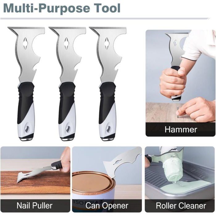Lot de 5 grattoirs de peinture pour papier peint, décalcomanies, finition de cloison sèche, grattage de plâtre Fabriqués en acier inoxydable de haute qualité, ces couteaux à mastic disposent de lames ultra-tranchantes et non corrosives qui glissent facilement à... DEKEones Lot de 5 grattoirs à papier peint en acier inoxydable comprenant 4 grattoirs à peinture et 1 outil multi-racloir, décapant de peinture Protection après-vente : nous nous engageons à fournir satisfaction à tous. Utilisations polyvalentes : ces grattoirs sont conçus non seulement pour appliquer du mastic et gratter la peinture sur les murs, mais également pour se débarrasser du ciment surélevé et du mastic sur les surfaces. La lame a une finition polie miroir, qui est conçue pour être antirouille et facile à nettoyer, ce qui rend votre travail d'amélioration de la maison plus agréable Avec un design ergonomique, il fournit une partie confortable à tenir, vous permettant de travailler avec le moins d'effort Donc, si vous avez des questions, veuillez nous contacter et nous vous répondrons dans les 24 heures La poignée est une excellente combinaison de caoutchouc souple et de plastique. En outre, ils sont capables de réparer toutes sortes de fissures et de remplir les trous pour rendre les surfaces planes à Main DEKEones Lot De 5 Grattoirs à Papier Peint En Acier | FindTheDeal Grattoir Papier Peint La gamme de tailles (5,1 cm à 12,7 cm) garantit que vous aurez toujours le bon outil pour une coupe détaillée, un grattage large ou des coutures de cloison... Couteau Peintre pas cher - Meilleures ofes neuf et occasion