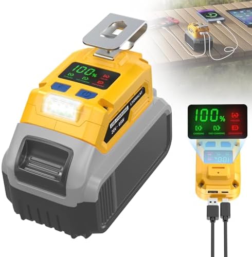 Avec les ports PD/QC3., 0 et la lampe de travail, il est très polyvalent. Adaptateur de batterie avec double port USB Chargement double port PD et QC3., 0., Il permet de recharger une large gamme de petits appareils électroniques, tels que téléphones, enceintes, petits ventilateurs et autres petits appareils électroniques. Le clip permet de l'accrocher à la ceinture et la sangle de sécurité empêche l'adaptateur de tomber pour un transport facile. Conception professionnelle pour une source d'alimentation sans fil. 2 Pack QUPERR Power Wheel Adapter avec Fuse & Switch, Adaptateur pour... Adaptateur De Batterie Dewalt Adaptateur USB Pour Batterie Dewalt 18 V 20 V Avec Lumière Adaptateur Batterie Dewalt 18v Avec deux ports de charge rapide USB (PD/QC3., 0) et un port DC 12V 3A, l'adaptateur peut fournir une charge rapide jusqu'à 22,5W pour deux appareils électroniques en même temps, tels que les téléphones portables, les tablettes et les vestes chauffantes. Cet adaptateur chargeur USB avec éclairage LED jusqu'à 230 lm est suffisamment puissant pour éclairer efficacement le travail, les déplacements dans l'obscurité ou le camping. Adaptateur de batterie USB QUPERR compatible avec les batteries Dewalt 18 V L'adaptateur de batterie pour Dewalt est doté d'un port PD et d'un port QC3., 0 pour recharger vos appareils électroniques. Clip de ceinture - Ce double adaptateur de chargeur USB pour Dewalt a un design de clip de ceinture, qui peut se fixer à la ceinture, ce qui est plus sûr et sécurisé, il s'ajuste bien et serré, sans glisser. Adaptateur de convertisseur de batterie Li-Ion pour outil électrique... Compatibilité - L'adaptateur USB est compatible avec les batteries Dewalt 18V Li-Ion, parfait pour DCB180,DCB181,DCB182,DCB183,DCB184,DCB200 etc., Ports PD/QC3., 0 et DC - branchez les ports et vous êtes en mode de charge. Trois modes d'éclairage Cet adaptateur de batterie USB pour Dewalt dispose de trois modes d'éclairage. La luminosité est de 115 lm, 173 lm et 230 lm pour les particuliers. Adaptateur/convertisseur de batterie pour outils Li-Ion DeWalt 18/20V vers Erbauer 18V EXT, adaptateur de batterie Li-Ion, accessoires pour outils électriques Les interfaces PD (Type-C) et QC3., 0 offrent des vitesses de transfert plus rapides, un design plus fin et un transfert de puissance plus important pour une charge rapide de vos appareils. Il suffit d'appuyer sur le bouton d'éclairage pour régler l'intensité. Sa couleur blanche douce est proche de la nature. L'adaptateur chargeur de téléphone dispose de trois niveaux d'éclairage : 230 lm, 173 lm et 115 lm. Les deux ports sont particulièrement utiles. Trois modes d'éclairage - Appuyez longuement pour allumer la lumière, puis appuyez à nouveau sur le bouton pour passer d'un mode à l'autre : lumière faible, lumière normale, lumière forte, compatible avec diverses scènes de travail ou d'extérieur. Protection multiple - Ce convertisseur adaptateur USB léger est doté d'une protection contre les courts-circuits, d'une protection contre les surintensités, d'une protection contre les sous-tensions et d'une faible consommation d'énergie.