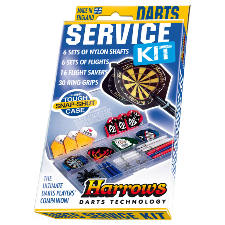 Kit de juego con repuestos Harrows Darts. Harrows Darts Service Kit - Sune Sport AS Marque Harrows : l'excellence de la fléchette. Avec cette boîte vous aurez tout le nécessaire, pour être prêt pour vos matchs. Sont inclus : 6 jeux d'ailettes, 6 jeux de shafts, 16 protections d'ailettes (en plastique), et 30 ressorts pour shafts nylon. Dimensions 175 x 95 x 7 mm Pochette Flechette Pack Darts Service (Boîte Ailettes Shafts Etui Flechette Harrows Service Kit chez - Livraison gratuite à partir de €75 - Grand assortiment - Expédition rapide