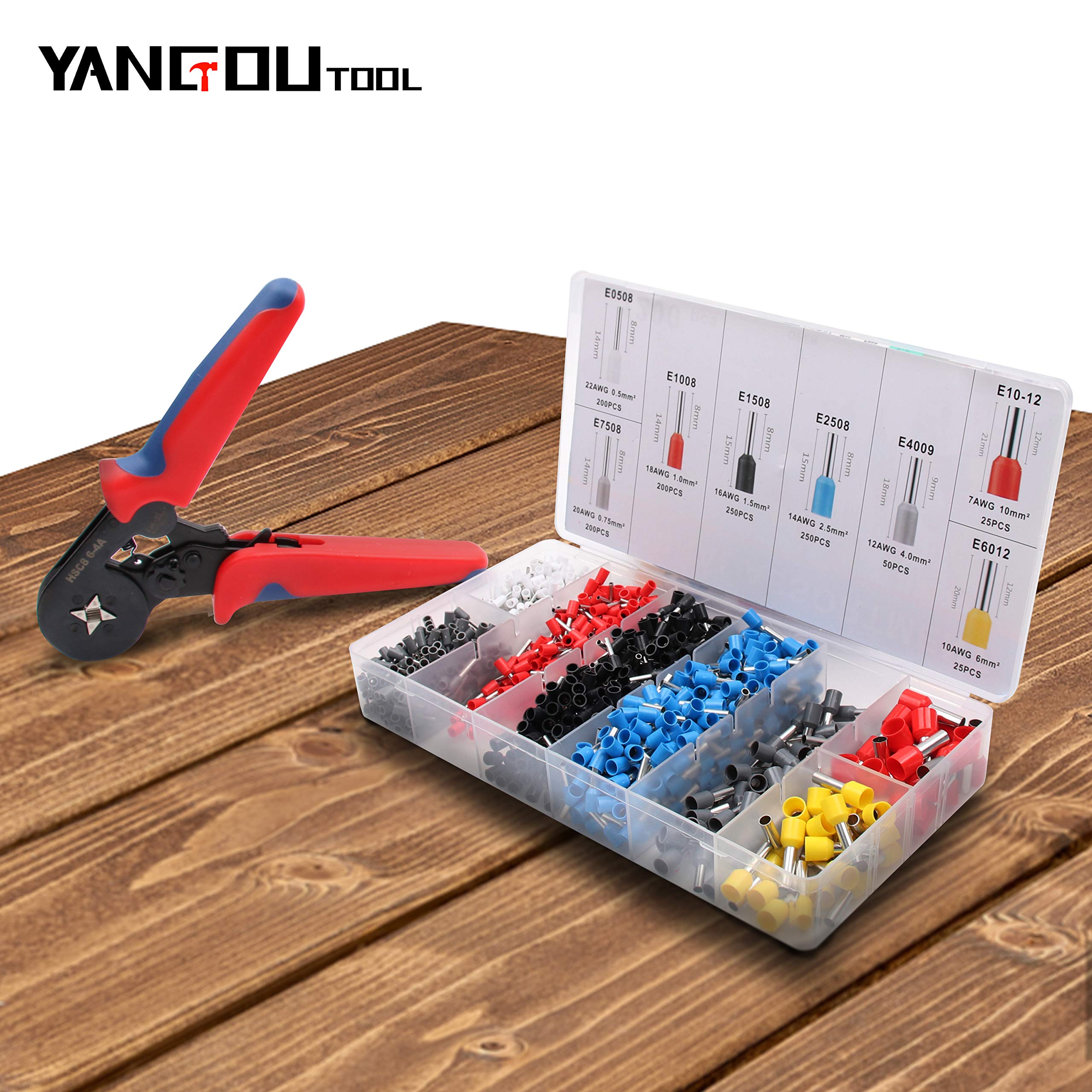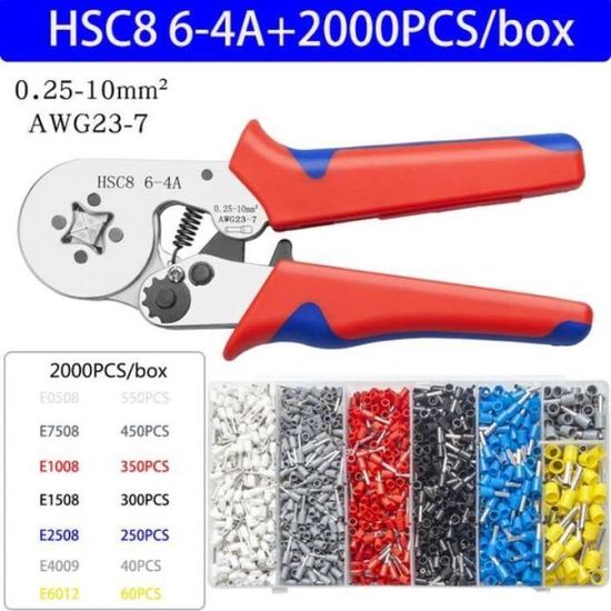 WEKESIGO Kit d'outils de sertissage de virole, AWG 23-10 auto-réglable, pince à sertir avec 1200 cosses de fil, connecteurs à sertir, embouts de fil AWG22-7 Plage de sertissage (jumeau) : 2 x 22-2 x 14 AWG (2 x 0,50 mm²-2 x 2,50 mm²) Rangement facile : les viroles sont livrées avec un étui en plastique, l'ensemble du kit est emballé dans un carton, facile à transporter et à ranger Pince à dénuder et à sertir deux en un : la pince à dénuder multifonctionnelle a une plage de dénudage de 0,2 à 6 mm² (24 à 10 AWG) et la poignée centrale peut... Kit d'outils de sertissage de virole : 1 outil de sertissage AWG23-10 auto-réglable pour fil à cliquet, 1200 cosses de fil à sertir, embouts AWG22-7... Outil De Sertir Virole Kit D'outils De Sertissage De Virole - Pince à Sertir Avec 1800 Embouts Pince A Sertir Embout Pince à Sertir 16mm2 Pince Outil,Kit D'outils De Sertissage De