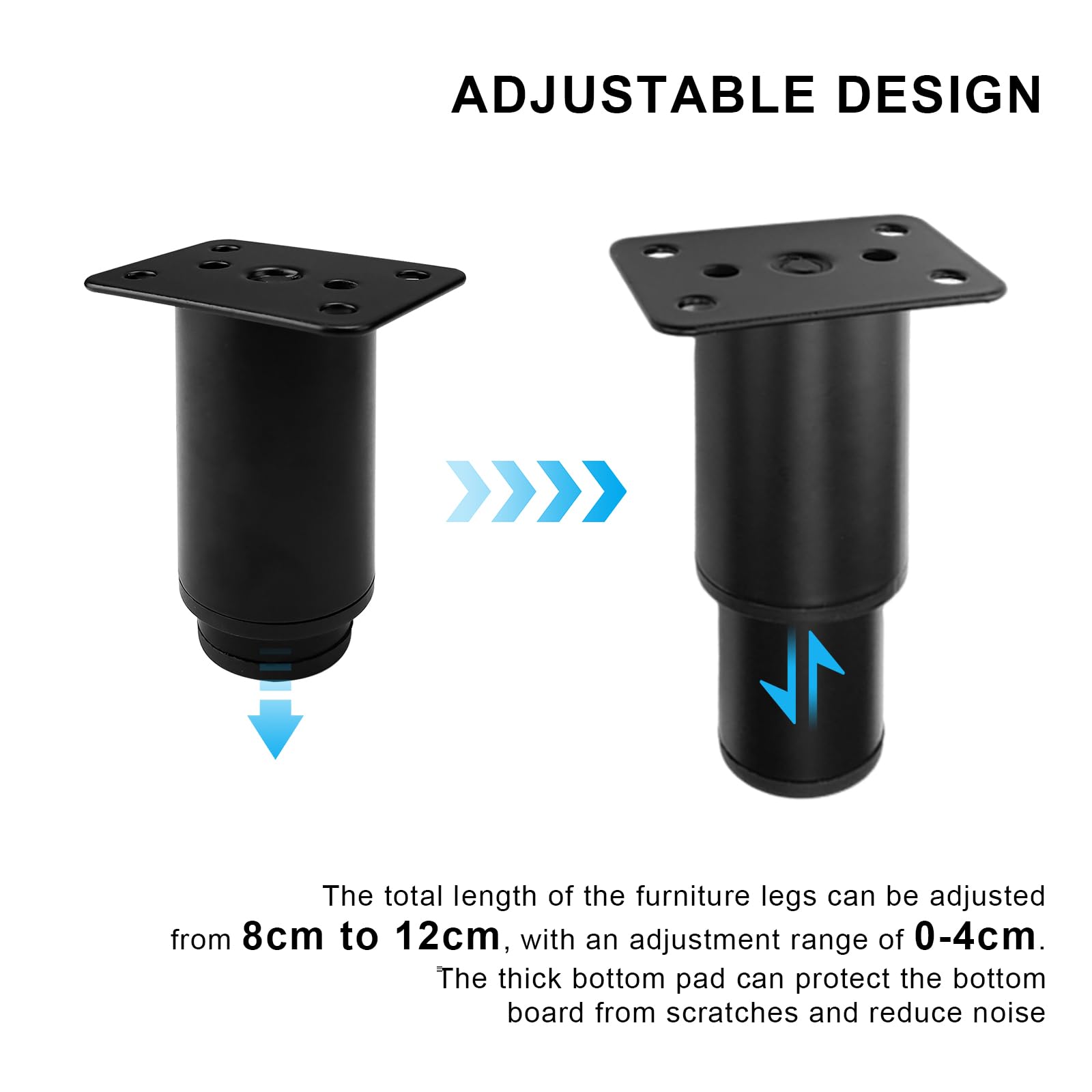 Nom du produit: Caractéristiques du produit: 🌟Conception à hauteur réglable, la hauteur peut être ajustée de 80 à 120 mm. 🌟Fabriqué en acier laminé à froid de haute qualité pour garantir une capacité de charge et une durabilité élevées. Rehausseurs de meubles 8 pièces, 40-65 mm de haut, rehausseurs de lit Pied De Table Reglable KLEHOPE 4 Pièces Pieds De Lit Réglables, 80-120 Mm, Noir Pied De Lit 20 Cm à Visser Description du produit Les pieds de meubles réglables en hauteur rendent vos meubles stables et élégants, protégeant vos meubles des rayures et des chocs. 🛏 Contenu de l'Emballage: Vous recevrez 4 pieds de meuble réglables, 4 vis en acier inoxydable 16, renforcées pour assurer stabilité et résistance, adaptées aux meubles tv, armoires, tables d'appoint, tables de chevet, lits, canapés, etc. Contenu de l'Emballage Vous recevrez 4 pieds de meuble r glables, 4 vis en acier inoxydable 16, renforc es pour assurer stabilit et r sistance, adapt es aux meubles tv, armoires, tables d'appoint, tables de chevet, lits, canap s, etc. 🛏 Facile à Installer: Les pieds des meubles sont faciles à installer et sont livrés avec des vis appropriées, il suffit de les visser et ils sont prêts à l'emploi, il n'est donc pas nécessaire d'en acheter un supplémentaire. 🛏 Design à la Mode: La surface des pieds des meubles est constituée d'une peinture de cuisson de haute qualité, qui a non seulement un aspect moderne et simple, mais est également respectueuse de l'environnement et durable, la couleur noire peut parfaitement correspondre à différents styles d'intérieur. Faire attention aux parties métalliques pour éviter les blessures. 8pcs Pieds de meubles Pieds Réglables aluminium 100 mm Pieds de Lit... Compatible avec une variété de meubles : pieds de meubles réglables non seulement adaptés pour les canapés, mais également adaptés pour les armoires, tables, ottomans, canapés, chaises, meubles TV, tables de nuit, sièges d'amour, lits, bureaux, casiers, armoires, armoires de salle de bain, commodes, étagères, tables basses... Conception R glable Les pieds du meuble sont r glables en hauteur,la hauteur d'origine est de 80 mm et la hauteur r glable est de 80 mm 120 mm, vous pouvez facilement ajuster le meuble la hauteur souhait e. Avertissement De Sûreté Faire attention lors de l'ajustement de la hauteur pour éviter les blessures.