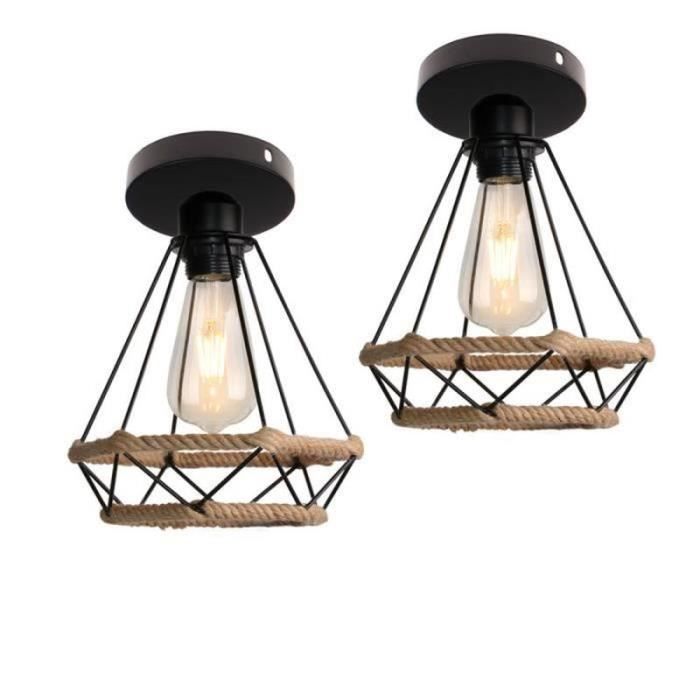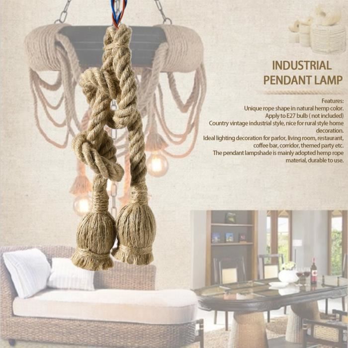 COUNT Lot de 2 Vintage Plafonnier Industrielle Rétro Cage en Corde de Plafonnier en corde, 2 têtes de 1 m vintage en corde de chanvre avec base E27, suspension rétro pour salle à manger, restaurant, bar : : Outils et BricolageÀ propos de cet article Lieux applicables : couloirs, salons, chambres, salles d'étude, couloirs, cours, restaurants, cuisines, salles de bains, entrées, balcons, chambres d'hôtel, salles d'exposition, entrepôts. Matériau... Luminaire Plafonnier Suspension Plafonnier En Corde De Chanvre, Double Tête 1 Mètre Vintage Corde Câble électrique Corde Avec Douille Il peut être noué avec différents nœuds créatifs et uniques. Il peut être utilisé pour l'éclairage, mais aussi comme décoration pour la maison, un café, un bar, etc. 2. Tension : 220-240 V | Puissance : max. 60 W | Matériau : métal, corde de chanvre | (ampoule non incluse) | 1 adaptateur secteur E27 3