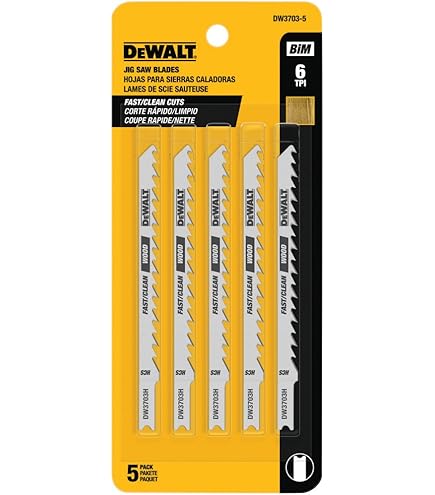 T design s'adapte à toutes les Bosch et Dewalt scie sauteuse Le produit est fabriqué en États-Unis. Matériau. Alliage d'acier cobalt · Marque. DEWALT · Dimensions du produit. 17,1L x 7,3La centimètres · Couleur. Multicolore. · Nombre de dents. 6 · Style. 10,2 cm, 6... Lame Scie Sauteuse Large DeWALT DW3750-5 Lame De Scie Sauteuse 4" X 6 DPP Paquet De 5 Dewalt Dewdw3750 5 Lame Scie Sauteuse Metal DEWALT DW3750-5 Lot de 5 lames de scie sauteuse en acier allié de cobalt et acier à tige en T 10,2 cm 6 TPI Precision sol dents restent aiguisés plus longtemps et offrent lisse, propre coupe