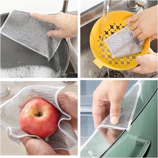 Torchon Multifonctionnel en Fil MéTallique Anti-Rayures pour Humides 12 Pièces Cuisines Chiffons de Vaisselle Réutilisables pour Couverts/Èviers Spécification: Taille:20×20 cm Matériau : Polyester Forfait Comprend :Torchon Multifonctionnel En Fil Metallique ×12 Question : Peut-il être utilisé à sec ? Réponse : Il doit être utilisé humide. Ce torchon multifonctionnel ne tombera pas facilement et ne laissera pas de rayures lors du nettoyage Ce torchon multifonctionnel en fil métallique anti-rayures convient aux éviers, plats, tasses, casseroles, fourchettes, cuillères, baguettes, baignoires et autres articles. Torchon En Fil Métallique Torchon Multifonctionnel En Fil Anti-rayures, Pour Ustensiles De Chiffon Magique Argenterie Torchon Multifonctionnel en Fil MéTallique Anti-Rayures pour Humides 12 Pièces Cuisines Chiffons de Vaisselle Réutilisables pour Couverts/Èviers Chiffons de nettoyage absorbants réutilisables, 5 pièces, pour nettoyer... Qu'il soit suspendu ou posé sur la table, la conception unique en maille double couche garantit que le torchon en fil métallique sèche rapidement. Chiffons À Vaisselle en Fil De Fer Polyvalents for Huides Et Secs Multifonction:Les torchons multifonctionnels en fil métallique peuvent être utilisés pour nettoyer les éviers, les cuisinières, les assiettes, les bols, les casseroles, les poêles et bien d'autres choses encore Portable:Contient 12 torchons multifonctionnels en fil métallique qui s'adaptent à différentes formes d'ustensiles de cuisine, sont légers et faciles à ranger, gardant votre cuisine organisée Double Couche:Les torchons multifonctionnels ont une plus grande friction que les chiffons ordinaires et sont plus faciles à rincer et à sécher