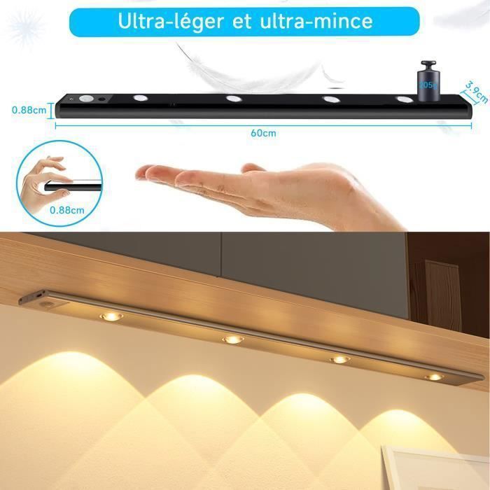 [Il y a 4 modes] Normal On et Normal Off], le [mode détecteur de nuit] ne s'allume pas pendant la journée et ne s'allume que la nuit lorsqu'un mouvement est détecté. Lampes d'éclairage d'armoire pour la cuisine, la chambre, les armoires, l'atelier, le garage, l'escalier, le couloir et ainsi de suite Maxuni LED Lampe de Placard Pack 4, Lampe LED Détecteur de Lumières réglables] Ces lampes d'armoire sont disponibles en 3 températures de couleur : chaude, neutre et blanche et offrent 3 niveaux de luminosité réglables - faible (15 %), moyenne (60 %) et élevée (100 Alignez la plaque de fer super adhésive sur l'armoire avec l'aimant à l'arrière de la lampe, et vous pouvez l'installer dans les armoires, placards, tiroirs, etc. Reglette Led 60 Cm Forepin Lampe De Placard 40 LED Lampe Detecteur De Mouvement Interieur Avec Détecteur Le [mode jour complet] s'allume automatiquement lorsqu'un mouvement est détecté ; vous pouvez passer d'un mode à l'autre selon vos besoins [Lumières réglables] Ces lampes d'armoire sont disponibles en 3 températures de couleur : chaude, neutre et blanche et offrent 3 niveaux de luminosité réglables - faible (15 %), moyenne (60 %) et élevée (100 %). Avec une seule charge, elle peut être utilisée pendant environ 30 jours et le port USB est pratique pour la recharger Éclairage placard LED sans fil · LED Lampe de Placard Dimmable Rechargeable 2000mAh sans fil, Lumière Réglette Led avec 5 Couleurs · 2pcs 40cm Rechargeable USB...