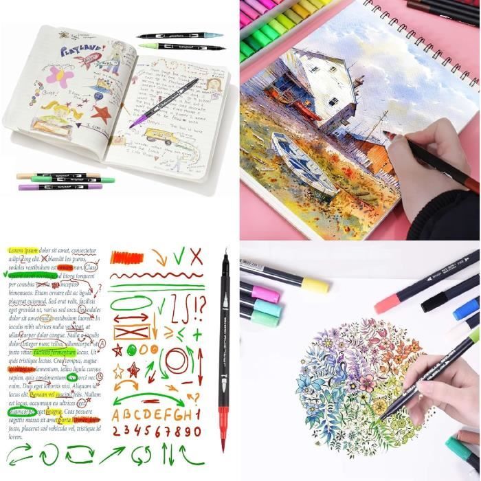 Les couleurs riches et vibrantes de nos marqueur feutre inspirent la créativité artistique et permettent un superposage et un mélange faciles. Notre App gratuite reconnaît les couleurs, associe et recommande le code couleur le plus proche. Codes couleur et double pointe : Nos feutres acrylique polyvalents allient une pointe fine de 1 mm pour les détails précis et une pointe pinceau de 1 à 6 mm pour les aplats larges, offrant la possibilité de créer des designs uniques combinant finesse et expressivité. Grâce à nos feutres coloriage adulte, vous pouvez facilement sélectionner les teintes souhaitées avec le capuchon de... L'App offre aussi du coloriage graffiti, des combinaisons de couleurs et des nuanciers électroniques à explorer. La pointe extra fine de 0,4 mm est parfaite pour les contours et les détails, tandis que la pointe pinceau de 1-6 mm convient à l'ombrage, au coloriage et à l'écriture. Ils sont le cadeau idéal pour Noël, anniversaires, Saint-Valentin, diplômes, Halloween et anniversaires. Feutre Double Pointe : Le design à deux embouts permet de changer facilement, pour créer des détails précis et des lignes épaisses ou fines. AEDAGA 80 couleurs stylos pinceaux numérotés à double pointe avec Fonctionnalités de l'App : Notre App propose des recommandations de codes couleurs intelligents pour feutre a eau double pointe, facilitant le choix des teintes. Nos feutre couleur constituent un cadeau idéal pour les mères, femmes, hommes, adultes, enfants, enseignants, étudiants, débutants et artistes. L'encre aqueuse de haute qualité se fond parfaitement, créant de beaux effets de coloriage sans bavures ni irrégularités. Feutres Coloriage ADULTE, 36 Couleurs Feutre Double Pointe Aquarelle Feutres Alcool Pack de 24 feutres pinceau à double extrémité aquarelle - Giorgione... Nos feutre aquarelle conviennent à diverses activités artistiques : animaux, fleurs, motifs, peinture, croquis et calligraphie. Couleurs Vibrantes : 80 feutres coloriage pinceaux double pointe avec codes couleurs.