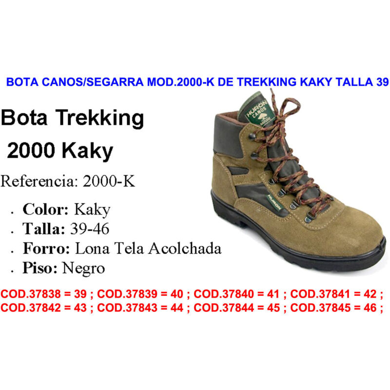 Avec semelle en caoutchouc., Avec lacets. Bottes tire-tenons de trekking n ° 37., Couleur Kaki. SEGARRA bota trekking kaki 2000 n.46 par , Bota Trekking Serraje 2000... SEGARRA Bota Turia Kaki N46 Imperm. Serraje 9301 Par , Botas Turia Chaussures de trekking Segarra Huron 2000-K, couleur kaki, taille 37 Modèle 2000 de Segarra.
