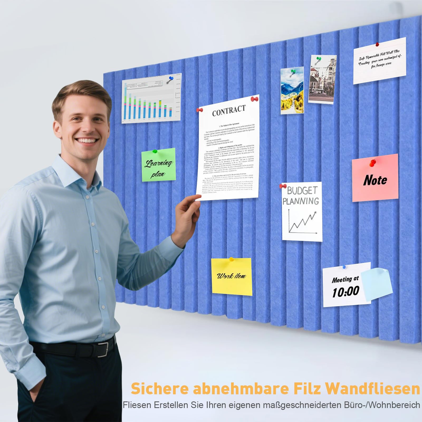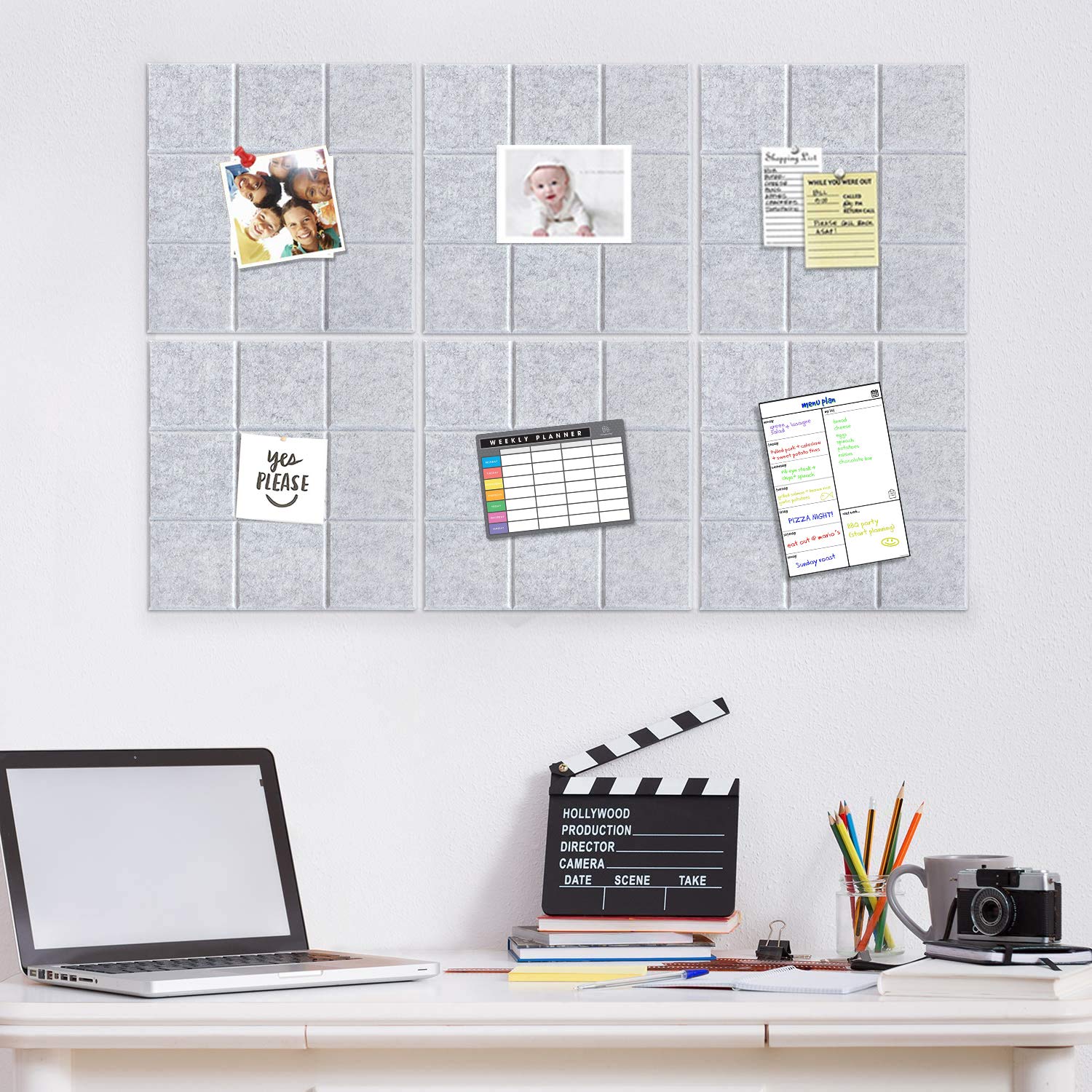 Remarques : Veuillez tester l'effet de retrait de la colle amovible avant l'installation. Largement utilisé : Nos bandes de feutre pour tableau d'affichage peuvent être utilisées pour afficher des photos, des notes, des agendas, des pense-bêtes. Vous pouvez également y accrocher des pendentifs comme des clés et des colliers 3: Tenez-vous à la zone souhaitée. Tableau Daffichage Tableau Feutre 60x40cm Behogan - Autocollant Avec 30 Punaises - Tableau Messages Photos Décoratif Tableau Affichage Décoratif L'épaisseur de ce tableau d'affichage est parfaite pour accueillir la plupart des punaises, de sorte que vous n'avez pas à vous soucier des accidents. Vous pouvez l'utiliser comme tableau d'image, tableau de messages, tableau noir, planificateur de voyage à venir, pour insérer des factures, des notes, des offres ou des rappels de calendrier ou pour n'importe quel message au bureau. Vous pouvez fixer fermement les punaises et vous assurer qu'elles ne tombent pas. Les tableaux en feutre sont légers et stables. Matériau sûr : le tableau d'affichage en feutre est fabriqué en feutre de haute qualité, non toxique, inoffensif, inodore et réutilisable, a des fonctions anti-moisissures, décoratives et autres et est assez sûr pour une utilisation en intérieur. Les tableaux d'affichage offrent une beauté élégante avec des lignes simples et constituent une alternative amusante aux vieux tableaux en liège carrés. 4 : Appuyez uniformément sur le tableau d'affichage en feutre sur la surface. Tableau D'affichage Mural Autocollant En Feutre Simple Pour Salon Tableau Affichage Pour Bureau Insonorisation 60 X 40 Cm 97096995 Facile à installer : l'installation ne prend que quelques secondes, pas de perçage fastidieux nécessaire. La surface auto-cicatrisante permet une utilisation répétée de punaises sans laisser de trous visibles. Tableau d'affichage en feutre autocollant robuste avec de nombreuses épingles pour la liberté dont vous avez besoin pour concevoir et créer vos propres tableaux... Caractéristiques : Couleur : gris Matériau : feutre Dimensions : 60 x 40 x 0,9 cm Contenu : 1 tableau en feutre., 30 clous., Conseils : 1., Si vous avez des questions sur notre tableau d'affichage en feutre, n'hésitez pas à nous contacter Selon la surface du mur, il peut y avoir des différences) Il vous suffit de retirer le revêtement à l'arrière et de placer la planche en feutre sur une surface propre, lisse et sèche. Ce n'est pas seulement une belle décoration de la maison, mais aussi un accessoire d'intérieur pratique qui rend votre vie plus organisée et plus efficace et convient très bien pour accrocher dans le salon, la chambre à coucher, la cuisine, le bureau, la chambre d'enfant et d'autres endroits.