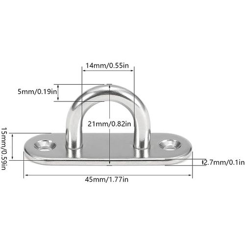 Si vous n'êtes pas satisfait de nos produits, nous pouvons les remboursement ou les remplacer. EN STOCK : 10 Pcs M5 Crochets de Plafond en Forme U Acier Inoxydable 304 Base 15 x 45mm Support Mural Plaques à Oeil pour Fixer les Cordons sur Bateau Yoga... Profil U en acier inoxydable rectifié 244cm X 10mm X 9mm - cuivre satiné | Leroy Merlin 🔧【Service excellent】Si vous avez des questions, n'hésitez pas à nous contacter et nous ferons de notre mieux pour résoudre le problème pour vous. Crochet Leve Plaque 10 Pièces M5 Crochets De Plafond En Forme U En Acier Inoxydable 304 De Base 15 X 45mm Support Mural Plaques A Oeil Pour Fixer Les Cordons Sur Bateau Et Yoga Ou Suspendre Les Lustres De Plafond Crochet De Plafond Avantages · Supporte des charges lourdes (souvent 22 kg et plus) · Construction durable, résistante à la déformation · Fixation sécurisée avec vis à bois ou... 🔧【Surface lisse】Acier Inoxydable Plaques à Oeil Avec 2 trous de vis sur la plaque, ce type de plaque à œillet aura peu de changements sur la surface que vous appliquez. Ces mousquetons en acier inoxydable sont dotés d'une porte à ressort qui leur permet d'être fixés rapidement et en toute sécurité à une variété de points de fixation.
