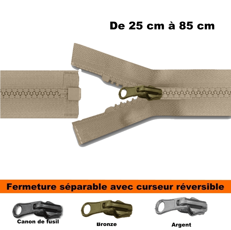 Fermeture Z19 col 570 Marine 75 à 95 cm - ABV mercerie Des Tissus de qualité pour tous vos projets de couture, d Fermeture Eclair 75cm beige antilope séparable pour blouson de la marque Eclair-Prestil Z19. Existe du 25 au 95cm. Largeur de la maille 6mm Col 940. Maille en métal doré. Convient pour les blousons, ameublement , camping... Article de Qualité, recommandé par toutes les couturières professionnelles Maille laiton, largeur 6 mm Pour pour blouson, parka, vêtement de travail, confection , Qualité supérieure. Les meilleures offres pour fermeture éclair 75 cm séparable métal Z19 ... beige antilope 940. beige moyen 945. marron foncé brou de noix 990. gris clair... Fermeture éclair Z19 - Laiton Séparable 6mm - 75 Cm Longueur 75 cm, Marque Prym., Marque Prym Fermeture séparable Longueur 75 cm