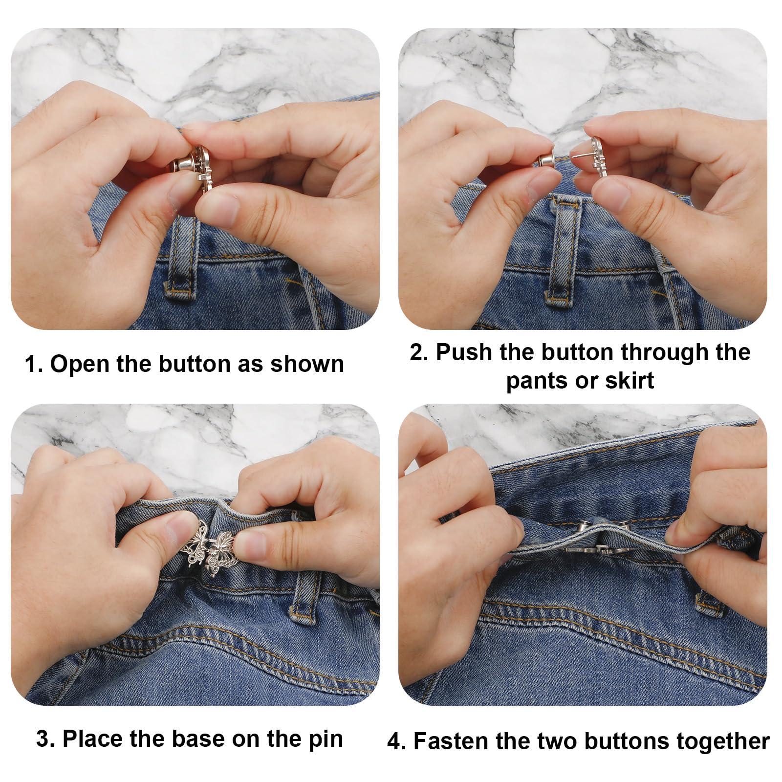 Contenu du package: vous recevrez 10 paires d'étendants de bouton de jeans en 9 couleurs. Bouton de serrage papillon : fabriqué en fer robuste, ce clip papillon permet un ajustement facile de la taille. Le colis comprend plusieurs boutons élégants de différentes couleurs, adaptés à diverses tenues Facile à utiliser Facile à utiliser, aucun autre outil professionnel requis. Extension Bouton Pantalon 10 Paires Serre-Boutons De Pantalon Papillon, Coloré Boucle De Taille Waist Knots Le design de papillon mignon peut adapter aux femmes, aux filles, aux adolescents, etc. Contenu de l'emballage : vous recevrez 10 paires d'extensions de boutons de jeans en 9 couleurs. Quantité et couleurs suffisantes pour répondre à votre usage quotidien. Matériau de qualité supérieure : les épingles à boutons pour jeans sont fabriquées en métal de qualité supérieure, fiable, robuste, lisse, pas facile à plier ou à casser, et peuvent être utilisées pendant une... 10 Paires Dépingles À Boutons De Jean, Bouton De Des styles mignons peuvent répondre à vos besoins en matière de correspondance différents. Une quantité et des couleurs suffisantes peuvent répondre à votre utilisation quotidienne.