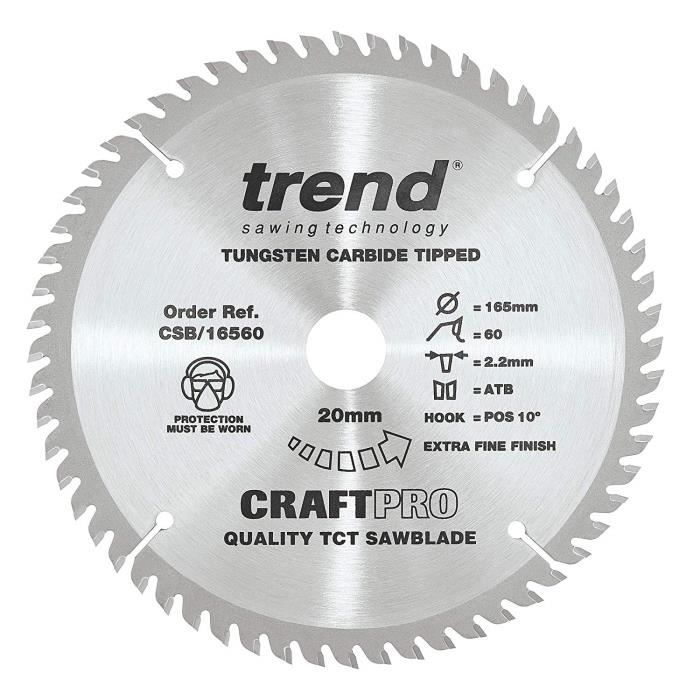 Pointes en carbure de tungstène microgranulaire : offre une rétention optimale des bords, prolongeant la durée de vie de la lame et maintenant le tranchant pendant de longues périodes. Plaque en alliage d'acier rectifié de précision : maintient la planéité, améliorant la précision de coupe et la stabilité lors de l'utilisation, même sous une charge lourde. Fentes d'extension : améliore la dissipation de la chaleur pour minimiser les vibrations, éviter les rebonds et améliorer la qualité de coupe générale, rendant vos tâches de coupe plus sûres et plus efficaces. Corps durci et trempé pour qu'il ne se déforme pas. Gravure laser sur le verso conformément à la norme européenne EN847-1/2. Nom Trend pour la traçabilité et la garantie de qualité. Corps en acier allié de grande qualité meulé avec précision pour conserver le plat Lame De Scie Circulaire À Bois Tct - 235 X 30 Mm X Alésage X 40 Dents... Lame Scie Circulaire Diamètre 180 Trend Lame De Scie Circulaire Pour Bois, 184 Mm De Diamètre, 30 Mm D'Alésage, 40 Dents, TCT, 2,6 Mm De Trait De Scie, 15° Crochet, CSB/18440A Scie Sur Table Evolution CraftPro CSB/18040 Lame de scie TCT pour scies circulaires