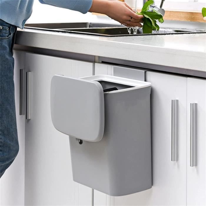 ✿ Crochets muraux, nettoyage confortable : design à accrocher au mur, plus facile à nettoyer. Description : Cette poubelle de cuisine a une grande ouverture horizontale qui ne déborde pas facilement. Cette poubelle de cuisine de 9 L est conçue avec un couvercle hermétique qui empêche les odeurs de se propager. Elle constitue ainsi un excellent collecteur de compost, pratique et sans odeur dans votre cuisine Il peut être accroché à la porte du placard de cuisine. Dimensions du produit : environ 23,7 x 13 x 29,5 cm. Capacité de charge forte, matériaux épais, bonne capacité de charge et durée de vie plus longue C'est un bon outil pour une vie propre et bien rangée dans la cuisine. Poubelle suspendue à porte de placard, poubelle de cuisine suspendue, poubelle de cuisine, outil Design de grattoir intuitif : design caché, mains propres sans saleté, facile à rayer Crochet mobile : crochet humanisé qui peut se déplacer librement selon ses propres besoins. Contenu : 1 poubelle de cuisine avec couvercle coulissant de 9 l. Poubelle De Cuisine- Poubelle Suspendue En Plastique (PP) De 10L Pour La Cuisine/le Bureau/la Poubelle Poubelle en plastique suspendue au mur, poubelle domestique, porte d'armoire de cuisine... Avec couvercle pour prévenir les émissions d'odeurs Dimensions de l'emballage : 27,5 x 8 x 32 cm.