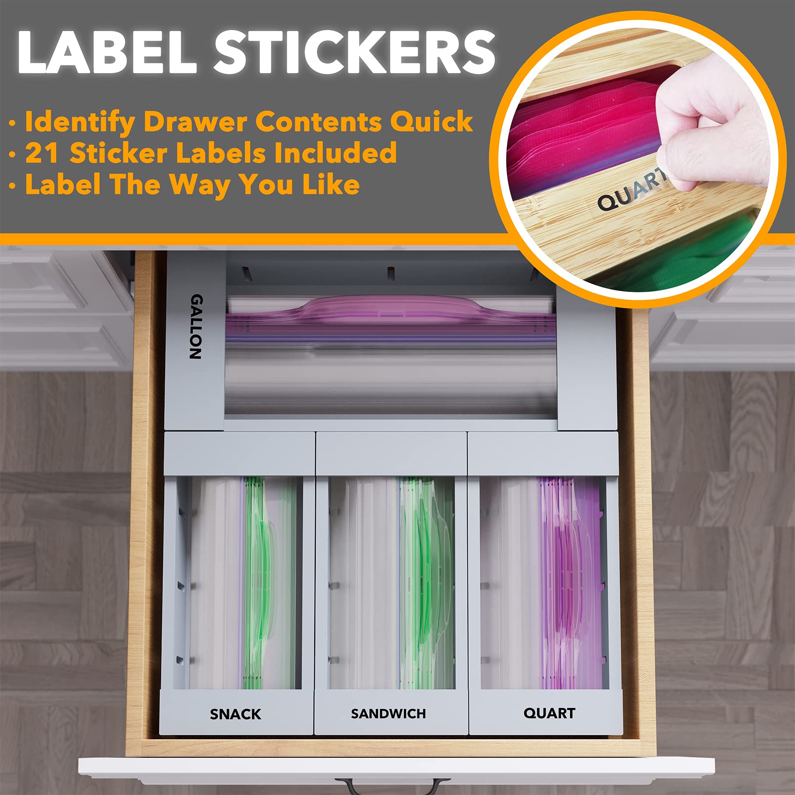21 étiquettes autocollantes incluses – Identifiez le contenu du tiroir instantanément avec les étiquettes sur la boîte ; vous pouvez étiqueter clairement l'organiseur ou ne pas utiliser les étiquettes pour garder l'aspect propre du support en bambou 1 boîte avec 4 fentes – Plusieurs emplacements de boîte vous offrent un excellent moyen d'organiser les sacs en plastique de stockage des aliments, qui peuvent s'adapter à différentes tailles de tiroirs pour répondre à vos besoins Aucun assemblage nécessaire : notre boîte de rangement en bambou est livrée entièrement assemblée et facile à utiliser. SAMATIZE Boîte de rangement en bois de bambou avec fermeture à glissière pour tiroir de cuisine SpaceAid Porte-couteaux de cuisine en bambou avec porte-couteaux de cuisine avec 16 fentes et... Bamboo Ziplock SpaceAid Lot De 4 Organiseurs De Rangement Pour Tiroir De Bag Storage Organizer Dimensions : 31,8 x 30,5 x 7,6 cm (1 pièce) ; brevet USPTO en attente