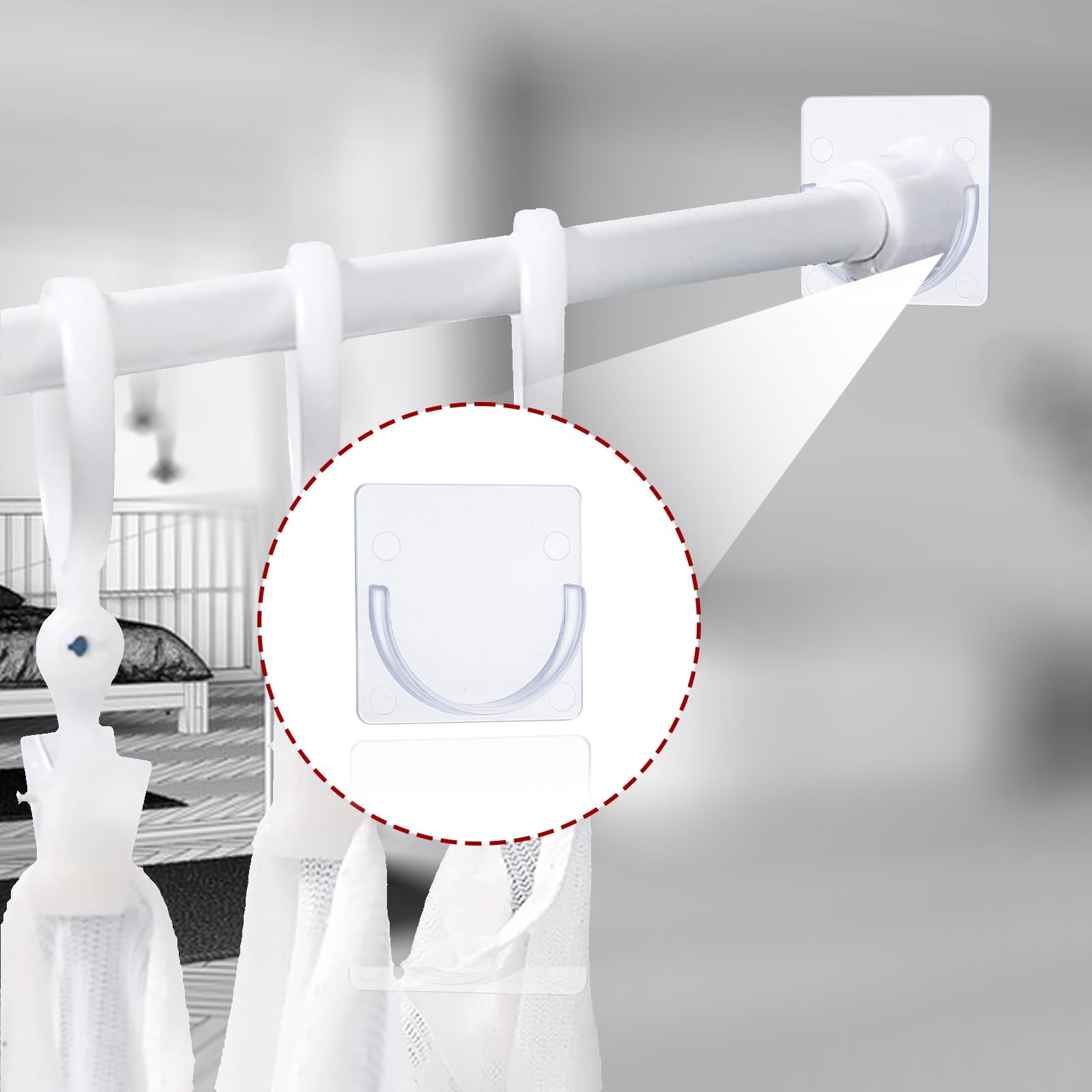 Améliorez votre salle de bain avec notre ensemble de 4 supports de barre de douche transparents. Idéal pour une utilisation dans n'importe quelle salle de bain, ces supports de barre de douche sont une solution pratique pour éviter l'affaissement et garantir un mouvement fluide du rideau. Glissière De Tringle De Douche Réglable, Porte-Savon En Silicone, Porte Tringle Douche Angle Reglable, Haute Qualité Barre De Douche D'Angle... Que vous cherchiez à renforcer une tringle à rideau existante ou à en installer une nouvelle, ces supports sont un choix fiable et pratique pour toute installation de salle de bain. Prebene Lot De 4 Supports De Tringle à Rideau De Douche - Transparent Ces clips de rideau de douche adhésifs sont conçus pour fournir une stabilité et un soutien améliorés à votre tringle de rideau de douche. L'installation est un jeu d'enfant grâce au dos adhésif qui élimine le besoin de percer et d'endommager vos murs. Fabriqués à partir de matériau ABS durable, ces supports sont à la fois solides et subtils, avec un design transparent qui complète tout intérieur de salle de bain. Lot de 4 crochets pour tringle télescopique, crochets muraux auto...