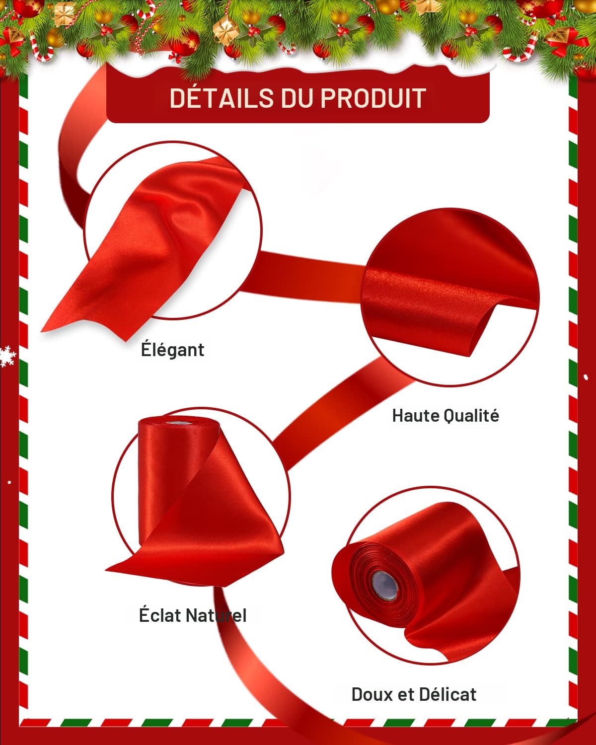 Caractéristiques : Matériau : fibre de polyester., Couleur : bordeaux. 2 rouleaux de ruban rouge foncé de 20 mm de large : notre ruban est fabriqué en polyester de haute qualité, surface lisse, couleur vive, confortable et doux, la taille du ruban est de 22 m x 2 cm Scénario d'utilisation : ces rubans fins en sucre d'orge sont parfaits pour la décoration et ils rendront votre fête plus belle. Lot de 4 rouleaux de ruban à friser double face en satin pour Ce ruban de satin rouge vin a une large gamme d'utilisations, telles que : ruban pour emballage cadeau, ruban de Noël pour emballage cadeau, ruban de voiture de mariage, ruban pour cheveux, ruban pour cheveux, ruban artisanal, ruban de gâteau d'anniversaire, ruban d'emballage cadeau, ruban de bouquet, ruban de fleuriste, ruban de décoration, et plus encore. Ruban multifonction : ces beaux rubans peuvent être utilisés dans diverses boîtes cadeaux, telles que les boîtes cadeaux d'anniversaire, les boîtes cadeaux de mariage. Ruban de satin bleu marine pour emballage cadeau, 2,5 cm x 22,9 m, ruban polyester double face pour décoration de Noël, Halloween, mariage, anniversaire, Saint... Les rubans offrent des possibilités créatives infinies. Le ruban naturel peut également être utilisé pour bander des fleurs et des invitations de mariage, des couronnes et des guirlandes, des voitures de mariage et toutes les décorations de mariage, des vêtements, des décorations saisonnières, des nœuds en ruban pour cheveux, des décorations de gâteaux, des emballages cadeaux, des travaux manuels, des ornements de maison, des bandeaux tressés, des bracelets de mariée et ainsi de suite. Le ruban de gâteau de Noël est brillant, aux couleurs vives, ne se décolore pas facilement, lavable en machine. Veuillez ne pas attacher le ballon directement avec le ruban couronne pour éviter les fuites d'air, il suffit d'utiliser le ruban pour décorer votre ballon. Contenu de l'emballage : ce lot de rubans comprend 1 rouleau de ruban de satin, 22 m par rouleau. · Matériau Ruban Pour Emballage Cadeau Ruban En Satin De Polyester Double Face Pour Emballage Cadeau, 50 Mm X Ruban Personnalisé Pour Paquet Matériau de qualité : le ruban de Noël épais est en tissu polyester unilatéral, surface lisse et brillante, doux et confortable au toucher.