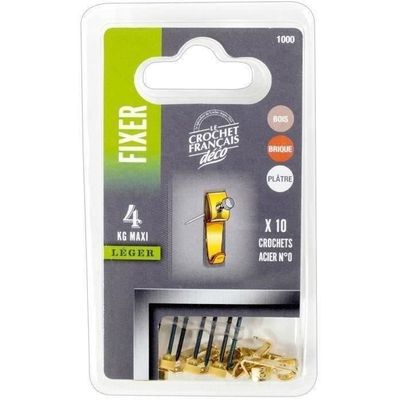 Un crochet resistant, adapte a tout type d’accroche au dos du tableau. Cimaise Contour Rail ( A coller ou a visser Crochet de grande dimension, idéal pour accrocher cadres et tableaux disposant d'une attache d'une grande dimension. Le crochet Large s'adapte par serrage sur les câbles perlon de 2 mm ou sur les câbles acier de 1,8 mm. Convient pour tout type d'accroche, notamment les plus importantes comme les oeillets de bache. La charge maximum supportée est de 7 kg. Hauteur du crochet est de 32 mm. 1... Accroche Tableau 10 Crochets Tableau Laiton 18mm Crochet Tableau Pour fil Perlon uniquement. Poids maximum supporté 7 Kgs. ... Ce crochet lourd est muni d'une vis de serrage en laiton sur le côté du crochet. Poids donné à titre...