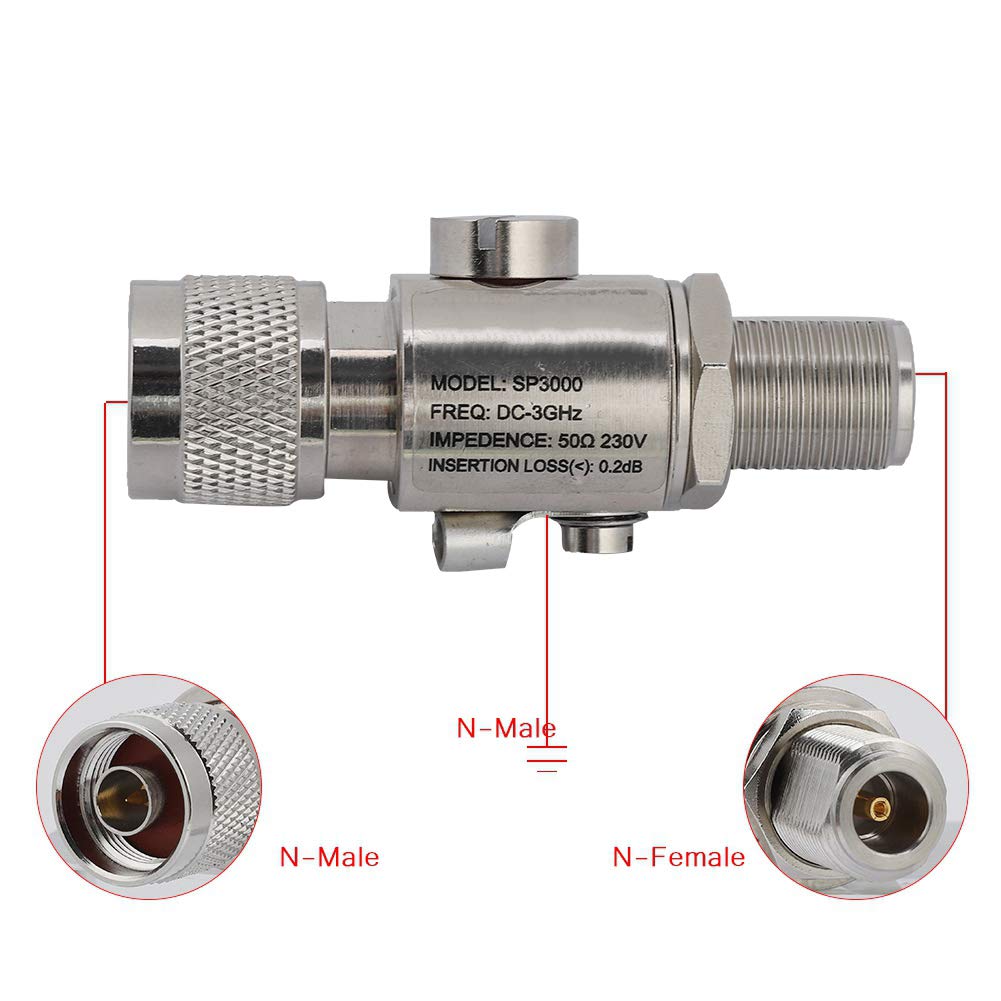 1., L'extrémité d'entrée est connectée à la ligne de transmission, et l'extrémité de sortie est connectée à l'équipement protégé., 2., Le fil de terre du système de protection contre la foudre doit être connecté de manière fiable au bus de terre, et le protecteur doit être aussi proche que possible de l'équipement protégé., 3., Si le protecteur est endommagé par la haute tension ou la foudre, veuillez le remplacer à temps. Protecteur de relais de tension réglable, contrôle de tension contre IEC 62305-4: Protection contre la foudre – Réseaux de puissance et de communication dans les structures UNE 21186:2011 /NF C 17-102:2011 Protection contre la foudre - Systèmes de protection contre la foudre à dispositif d'amorçage. UNE EN 60664-1 Coordination de l'isolement des matériels dans les systèmes (réseaux) à basse tension Protection Contre Les Surtensions DZ47Y-40 385V SPD Protecteur De Surtension De Maison Dispositif De Protection Contre La Foudre La protection coaxiale contre la foudre assure une transmission stable du signal. Protection contre les surtensions, avec connecteurs N mâle vers SMA mâle 50 ohm, large bande passante DC-3 GHz couvre les cellules 2G, 3G et 4G LTE... Spécification : Plug : N mâle vers N femelle Fréquence : DC-3GHz Rapport d'onde stationnaire : <0., 2dB Puissance maximale : 200W Tension de décharge : 230V Impédance : 50Ω Protection contre la foudre sur toute la bande : Support Principe de court-circuit 1/4 de longueur d'onde : Support Taille de l'emballage : 8 * 3., 2 * 3 cm/ 3., 1 * 1., 3 * 1., 2 in Un principe de court-circuit quart d'onde pour obtenir une excellente protection contre la foudre. Que la communication soit claire quel que soit le groupe dans lequel vous êtes. Le boîtier de surtension techwin est utilisé pour protéger l