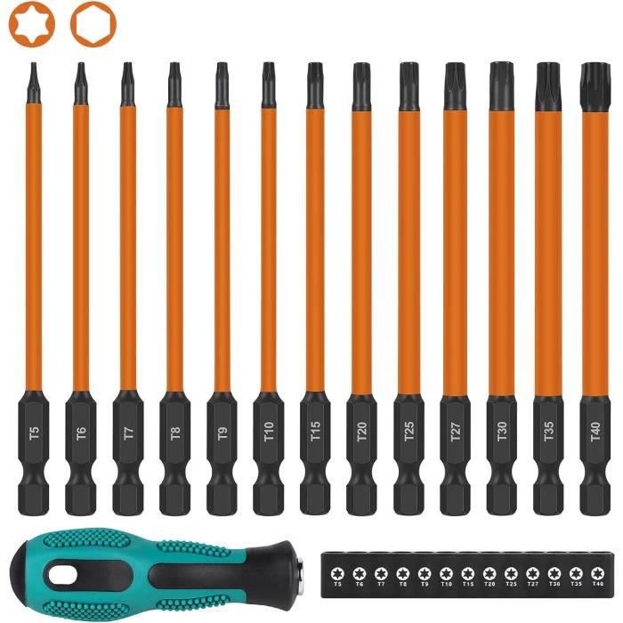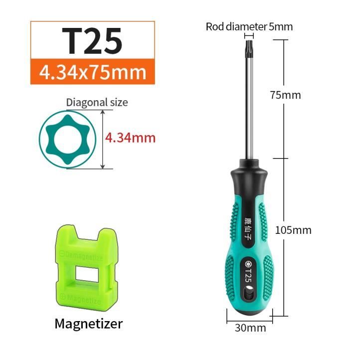 Tournevis de sécurité Torx, pointe magnétique T25 de 4mm, couple élevé, faible cam-out. Avec finition chromée pour antirouille et résistance à l᾿usure. Ils sont très employés pour ouvrir ou fermer tout couvercle de votre téléphone portable, ordinateurs portables, etc. About this item Taille - Ce type de tournevis : Torx ; taille : T25 ; longueur totale : 220 mm ; longueur de la poignée : 120 mm. Matériau : fabriqué en alliage d'acier S2 traité thermiquement avec un traitement de surface rouge offrant une excellente résistance à la rouille et à l'usure, tout en améliorant également l'attrait esthétique MATÉRIAU CR-V]Le corps forgé en acier allié au chrome-vanadium traité thermiquement offre une dureté, un couple et une ténacité élevés. Avec finition chromée... Ssd Samsung Sourcing Map Torx Tournevis T10 Sécurité Magnétique Étoile Tournevis Avec 4" CR-V Arbre Et Transparente Rouge Poignée Disque Dur Ssd C᾿est parfait pour vos travaux de réparation. Tournevis torx T25 x 100 mm Erbauer noir 【ASTUCE MAGNÉTISÉE ET DE SÉCURITÉ】Attirez de manière sûre les vis avant de les installer et après les avoir retirées pour une efficacité accrue. 【MATÉRIAU CR-V】Le corps forgé en acier allié au chrome-vanadium traité thermiquement offre une dureté, un couple et une ténacité élevés. [POIGNÉE EN PLASTIQUE] La poignée de conception ergonomique offre une commodité et un confort pour travailler.