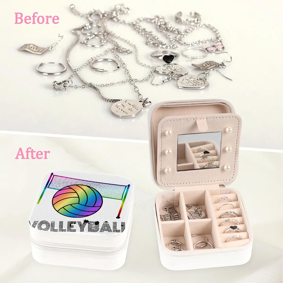 Taille adaptée aux voyages : cette boîte à bijoux de volleyball mesure environ 10 x 10 x 5 cm, petite et pratique pour transporter vos bijoux ; elle peut facilement se glisser dans votre sac à main, valise ou sac pour le garder en sécurité lors de vos voyages Caractéristiques : Matériau : cuir synthétique., Couleur : blanc. Différents compartiments et séparateurs sont spécialement conçus pour ranger séparément les bagues, les boucles d'oreilles et les colliers. Dimensions : environ 10 x 10 x 5 cm. Remarques : Les mesures étant prises à la main, les tailles indiquées peuvent varier légèrement. Boite Pour Bijoux Yeyeplum Lot De 12 Boîtes à Bijoux De Volley-ball Pour équipe, Boîte à Boite A Bijoux Originale Contenu : 12 boîtes à bijoux de volley-ball. BALLE VOLLEY-BALL CHARMES Breloques boule Fabrication de bijoux... Coffret bijoux de portable Pas Cher | Bureau Vallée Vous cherchez le cadeau parfait pour votre équipe de volley-ball ? Notre boîte à bijoux personnalisée pour équipe de volley-ball est un souvenir élégant et fonctionnel pour les joueurs, les entraîneurs et les amateurs de sport Quantité suffisante : vous recevrez 12 boîtes à bijoux de volley-ball, offrant un espace de rangement suffisant et systématique pour vos accessoires de bijoux Cette conception permet d'éviter l'enchevêtrement et de garder vos bijoux en sécurité dans les emplacements prévus à cet effet. Que vous partiez en vacances ou que vous alliez simplement à la salle de sport, cette boîte se glisse facilement dans n'importe quel sac ou valise et vous donne l'occasion de vous mettre sur votre trente-et-un. Large gamme d'utilisation : la boîte de rangement à bijoux de volleyball a assez d'espace pour stocker une variété d'accessoires, y compris des bagues, des boucles d'oreilles, des colliers, etc. La couleur peut varier légèrement en raison des différents affichages de l'écran.