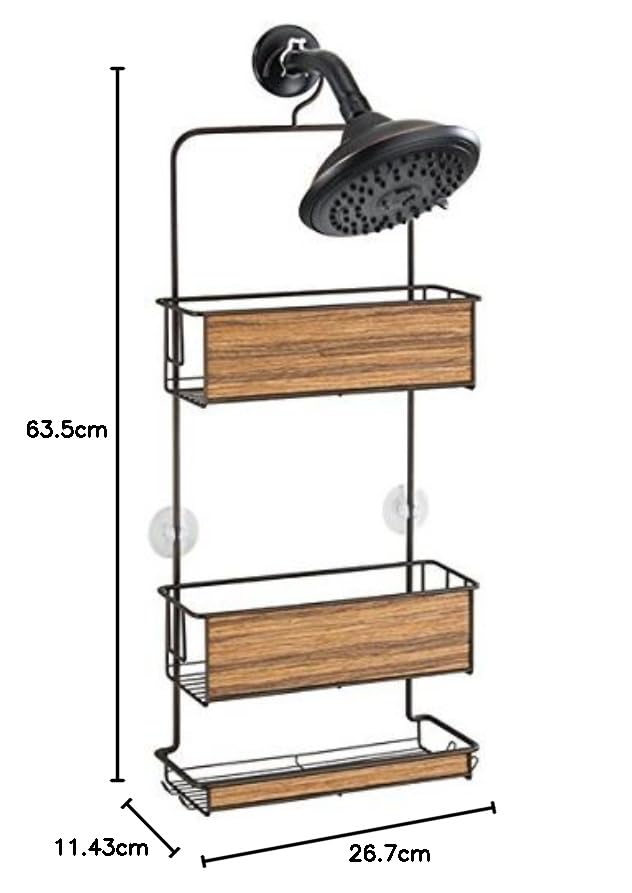 Deux ventouses garantissent une fixation stable et l'empêchent de glisser. Serviteurs De Douche MDesign Panier De Douche Suspendu – Étagère De Douche Etagere De Douche Et pourtant, vous aurez toujours autant de place pour prendre une agréable douche. Rangez élégamment vos accessoires de douche – avec le valet de douche sans perçage par mDesign ! mDesign étagère de Douche – serviteur de Bain en métal, Montage sans Ainsi, il sèche vite après utilisation et résiste à l'humidité de la salle de bain. Son design fin à la finition bronze s'accorde sans effort avec chaque salle de bain. AMPLE ESPACE : Ce valet de douche à trois niveaux offre de l'espace de rangement pour shampoing, gel douche, etc. Les deux crochets peuvent être utilisés... Le serviteur de douche se suspend facilement à la tête de douche. Avec ce rangement de salle de bain mDesign, utilisez efficacement jusqu'au dernier centimètre de votre cabine de douche. HAUTE QUALITÉ : L'accessoire de douche au design intemporel et en métal résistant bénéficie d'un revêtement inoxydable qui lui garantit une longue durée de vie et une hygiène pointue. Les produits de beauté importants peuvent être en permanence rangés à portée de main : deux paniers et six crochets proposent de la place pour vos shampooings, gels douche, après-shampooings, savons, rasoirs, etc. Le panier de douche est fabriqué en métal avec revêtement inoxydable, qui résiste à l'environnement humide de la salle de bain. Ainsi, vos accessoires sont rangés facilement en sécurité. Les caractéristiques du produit en détail idéal pour la cabine de douche et la salle de bain fixation stable grâce à des ventouses supplémentaires montage facile dimensions : 41,3 cm x 10,7 cm x 54,6 cm matériau : métal couleur : bronze numéro de modèle : 10459MDBSTEU Les 6 crochets permettent de suspendre gants, rasoirs, etc.