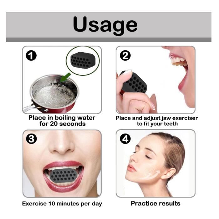 Facile à transporter : l'appareil à mâcher est petit et léger, facile à transporter et à utiliser. Mode d'emploi : avant utilisation, faites bouillir l'appareil de mâchoire dans de l'eau bouillante pendant 15 à 20 secondes, rincez votre bouche et mettez-le dans votre bouche pour le mordre doucement pour une prise en main confortable. Muscler Machoire Lot De 3 Exercices De Mâchoire à Mâcher, Exercice Du Visage Pour La Mâchoire, Exercice De La Mâchoire Pour Réduire Le Double Menton, Balle De Fitness Pour Améliorer La Mâchoire Ciselée, Lot Jaw Trainer Après utilisation, rincer Jaw Sculptor avec de l'eau et sécher à l'air libre pour la prochaine utilisation. Matériau : silicone de qualité alimentaire. Vous pouvez faire de l'exercice dans n'importe quel lieu public. Caractéristiques : 1., L'utilisation du toner réducteur de menton double peut aider à exercer et renforcer les muscles de la mâchoire, y compris les muscles de la mastication et du cou., 2., Le sculpteur de mâchoire est compact et léger, facile à transporter et à utiliser, peut être utilisé à la maison ou en déplacement., 3., L'entraîneur de mâchoire est adapté à tous les âges, ralentissant efficacement le relâchement de la mâchoire et les problèmes de double menton. Raffermissant les rides du visage : l'utilisation de la mâchoire d'entraînement peut stimuler les muscles autour de la mâchoire pour les rendre plus fermes. 【Emballage du produit】Vous recevrez 6 mâchoires d'entraînement musculaire 3 couleurs différentes, 2 pièces de chaque couleur. SheIn est un site de conception et production de vêtements pour femme depuis environs 5 ans. Boîte bleue rouge noire-Mâchoire en Gel de silice de qualité Matériau] Le Jaw Line Muscle Trainer utilise des aliments en silicone de qualité pour garantir la sécurité. Mâchez la gomme après l'avoir lavée, vous pouvez la... Emballage du produit : Entraîneur musculaire à 6 mâchoires Caractéristiques : Nom : entraîneur musculaire de mâchoire. Vous pouvez tenir le renforcement de mâchoire dans votre bouche et vous entraîner sans problème. Gris Dimensions : 3 x 1,8 cm. Appareil de mastication sûr et sain : notre appareil d'exercice de mâchoire pour homme et femme est fabriqué à partir de silicone de qualité alimentaire. La balle d'exercice de mâchoire est confortable et satisfaisante à mâcher, une alternative pratique à la gomme de la mâchoire