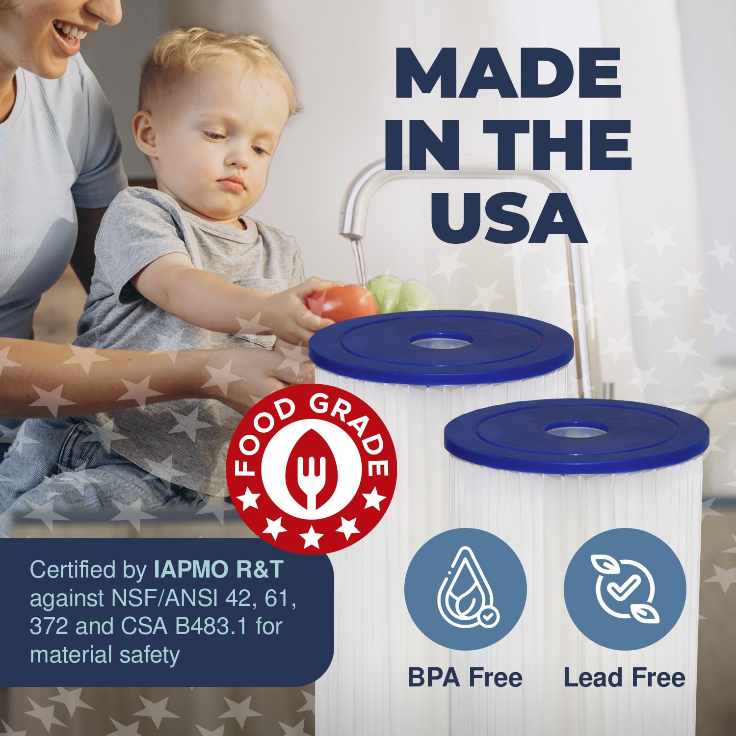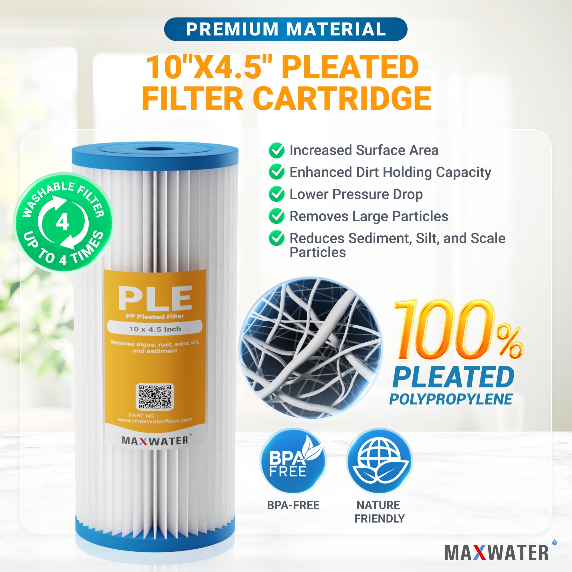 Remarque : nos filtres pour toute la maison ne sont pas des filtres d'origine. Membrane Solutions Lot de 4 filtres à eau à sédiments plissés en L'ensemble de filtres en polyphosphate pour toute la maison Express Water protège votre maison et votre santé en filtrant toute l'eau entrante. Il élimine les principaux contaminants tels que le chlore, le fer, la rouille, les pesticides, etc., garantissant ainsi une eau propre pour boire, se doucher et cuisiner. Chaque jeu de filtres de remplacement dure jusqu'à 100 000 gallons ou 6 à 12... Cartouche Filtrante Max Water Lot De 2 Cartouches De Filtre à Sédiments Plissées De 5 Microns - 25,4 X 11,4 Cm - Compatible Avec R50-BBSA, FXHSC, GXWH40L Filtre Adoucisseur D'eau Préfiltre à eau rotatif,VEVOR 4 T/H débit élevé,filtre à sédiments de 40 microns d'eau de puits...