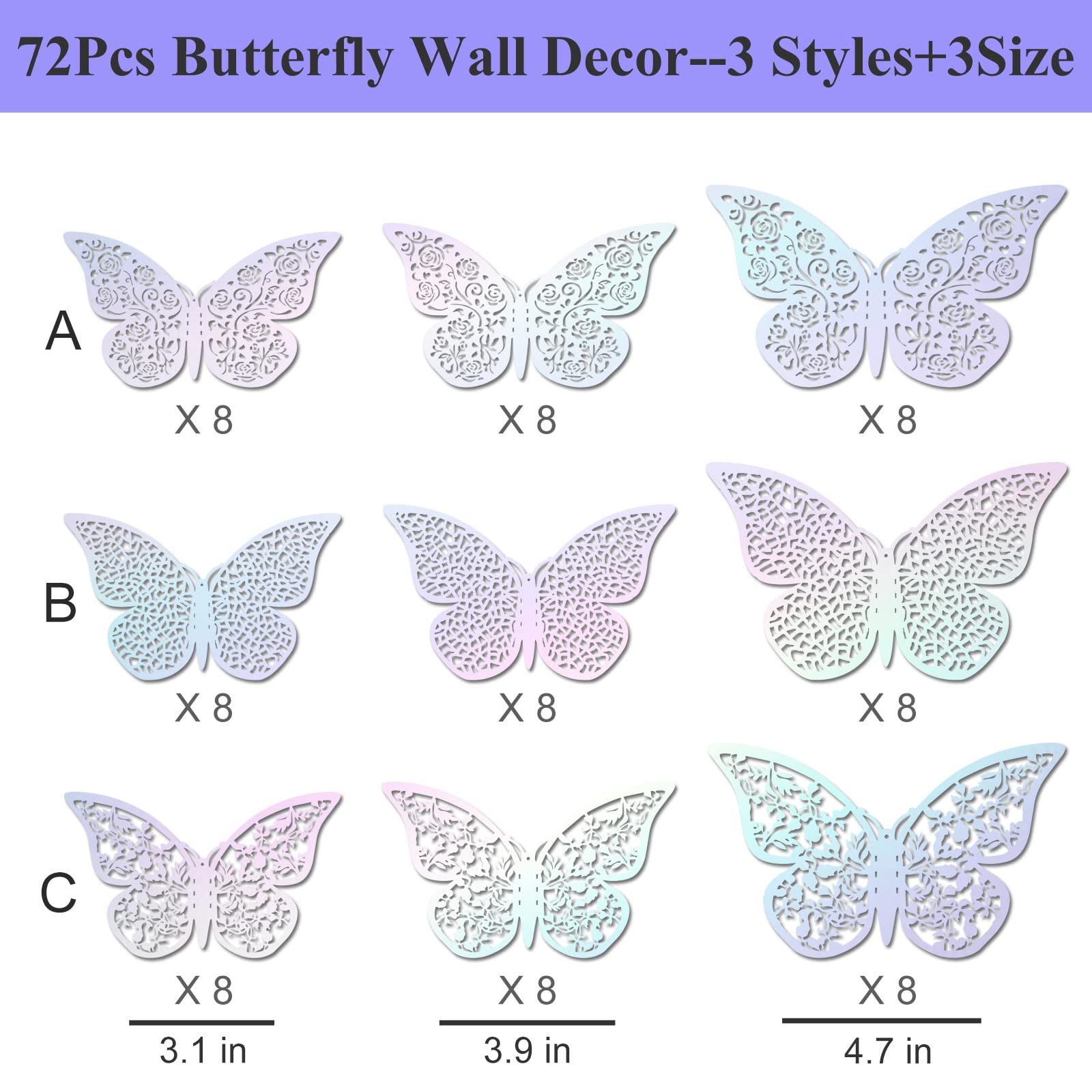 Description du produit Lot de 72 autocollants muraux en forme de papillon - Décoration de gâteau - Papillons - Décoration murale pour chambre à coucher Avertissement De Sûreté Emballage plastique, tenir hors de portée des enfants Excellente adhérence : la décoration papillon en papier utilise un adhésif double face de haute qualité, il est si collant et robuste que vous n'avez pas besoin de vous soucier qu'ils tombent des murs ou d'autres endroits attachés. Facile à appliquer : ce lot d'autocollants papillon peut être appliqué sur n'importe quelle surface lisse, y compris les murs, les réfrigérateurs, les portes, etc. Lot De 72 Autocollants Papillons 3D Pour Mur, Décorations En Money Back Guarantee ensures that buyers receive the item they ordered or get their money back. Décoraton murale moderne papllons colorés Décoraton murale papllon... Livré avec 24 pastilles adhésives double face. 72 Pièces 3D Papillon Stickers Muraux, Papiers Papillon Autocollants... La colle est amovible et ne présente aucun dommage ni résidu collant. Il vous suffit d'appuyer sur les autocollants sur les endroits ciblés pendant quelques secondes et ils adhèrent fermement dessus. Skelang Lot de 3 décorations murales en métal en forme de papillon