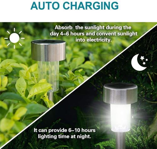 Batterie Ni-MH intégrée de grande capacité de 1200 mAh rechargeable par énergie solaire. Lampes Solaires De Sol Et Piquets De Sol Extérieur 4 Pcs | Leroy Merlin Par rapport à d'autres lampes solaires de jardin, notre étanchéité est extrêmement forte, peut résister à de fortes pluies sans problèmes. En outre, il a une belle apparence et une bonne texture. Le plus important est qu'il résiste à de lourdes charges et peut supporter jusqu'à 500 kg. 1 manuel d'utilisation (français non garanti). Grâce au panneau solaire monocristallin, le taux de conversion des lampes solaires est jusqu'à 20 % et peut être complètement chargé en 6 à 8 heures. Lampes solaires économes en énergie et respecuses de l'environnement : La lampe solaire avec capteur de lumière s'allume automatiquement la nuit ou dans l'obscurité et s'éteint automatiquement pendant la journée ou dans la zone éclairée. Le plus important est qu'il résiste à de lourdes charges et supporte jusqu'à 500 kg. Les spots solaires d'extérieur impressionnent les gens avec leur savoir-faire extrêmement robuste, de qualité supérieure et leur excellente luminosité. Grâce à sa structure robuste, la lampe solaire est très robuste. Grâce au monocristallin, le taux de conversion des lampes solaires jusqu'à 20 % de haut. Durée de fonctionnement : À pleine charge, l'éclairage peut être d'environ 10 à 12 heures. Chaque lampadaire a 8 points. Les spots encastrables sont équipés de 12 LED blanc chaud de 0,2 W. Les spots encastrables sont équipés de 12 LED blanc chaud de 0,2 W. Batterie Ni-MH intégrée de grande capacité de 1200 mAh rechargeable par énergie solaire. Ces lampes solaires offrent une forte lumière et peuvent atteindre 8-10 lumens, ce qui peut offrir plus de surface d'éclairage Lampe solaire ultra lumineuse pour l'extérieur., Solide et durable. La température de couleur est de 3000 K. Lampes solaires de jardin avec piquets de sol blanc chaud 4 pcs | Leroy Abat-jour épais de qualité supérieure anti- : La ue est en ABS de qualité supérieure, qui peut être appelée couvercle de pulvérisation - Non seulement résistant à l'usure, à la corrosion et aux UV. IP65 étanche et durable., Super étanche IP65., Nous utilisons 6 vis pour renforcer la bague d'étanchéité. Batterie requise : 1 batterie au lithium 3,7 V / 1200 mAh / 4,44 W (incluse). Il suffit de pousser les piquets en plastique dans le sol., 5., Super étanche IP65., Nous utilisons 6 vis pour renforcer la bague d'étanchéité. En raison de la structure robuste, la lumière LED est très robuste. La dernière lampe solaire ultra lumineuse : Lampe solaire utilisée dans les jardins extérieurs avec 12 LED ultra lumineuses. Caractéristiques : Type d'ampoule : 12 ampoules LED SMD 5050., Puissance du panneau solaire (silicium monocristallin) : 5,5 V / 110 mA / 0,6 W. Vous pouvez certainement utiliser cette lampe solaire de jardin pendant longtemps dans le jardin. Lot de 4 lampes solaires d'extérieur - Blanc chaud.[G692... Lot de 4 lampes solaires Shuniu., Caractéristiques : 1., La dernière lampe solaire ultra-lumineuse pour le jardin, l'avalanche ou yard., 2., Abat-jour épais de qualité supérieure anti-explosion : La coque est fabriquée en ABS de haute qualité, qui peut être appelé couvercle de pulvérisation. Solide et durable : La de la lampe solaire au sol à l'extérieur est de 100 000 heures, même après quatre ou cinq ans de fonctionnement, la lumière solaire peut fonctionner normalement et a toujours une excellente luminosité.