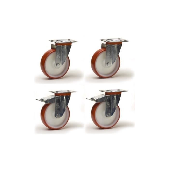 Dimensions totales : 15 x 6,3 x 13 cm Pour déplacer tes meubles lourds sans effort ! Ce set de 4 roulettes de 100 mm de diamètre supporte jusqu'à 400 kg au total. Elles sont équipées d'un frein... Parfait pour les bois durs, les stratifiés, les carreaux, l'ardoise et autres sols durs. Plaque de base fixe et caoutchouc très résistant - Roulette avec frein de stationnement rotatif qui empêche la roue de rouler - Les roues à surface lisse protègent les planchers en bois (lamite, carrelage, ardoise) des rayures ou des éclats. Roulette Charge Lourde Exterieur Spacecare Lot De 4 Roulettes De 12,7 Cm Avec Plaque De Roulement Roulette 100mm 4 roulettes pivotantes résistantes à double roulement et frein 100 Moyeu lisse ou roulette : arbre amovible , Capacité totale : 400 kg. Lot de 4 roulettes pivotante 100 mm avec freins capacité 500 kg. Les roues en caoutchouc ne rayent pas et ne laissent pas de traces sur les surfaces., Sans bruit ➤ Roulettes rotatives faciles à utiliser, idéales pour les applications industrielles, pour les maisons, les écoles, les magasins, les hôpitaux, etc. Capacité totale : 400 kg. Grâce à la tête pivotante à double roulement à billes, la roulette pivote à 360 degrés, les mouvements de la roue sont plus confortables et plus fluides Les roulettes pour meubles pour charges lourdes sont robustes et durables. Verrouillage avant, roue à double action et pivot. Cadre en tôle d'acier galvanisé. Avec un frein de stationnement pivotant, la roue ne bouge ou ne se retourne pas pendant le mouvement, ce qui la rend plus confortable et plus sûre Dimensions de la plaque supérieure : 9,3 x 6,3 cm.
