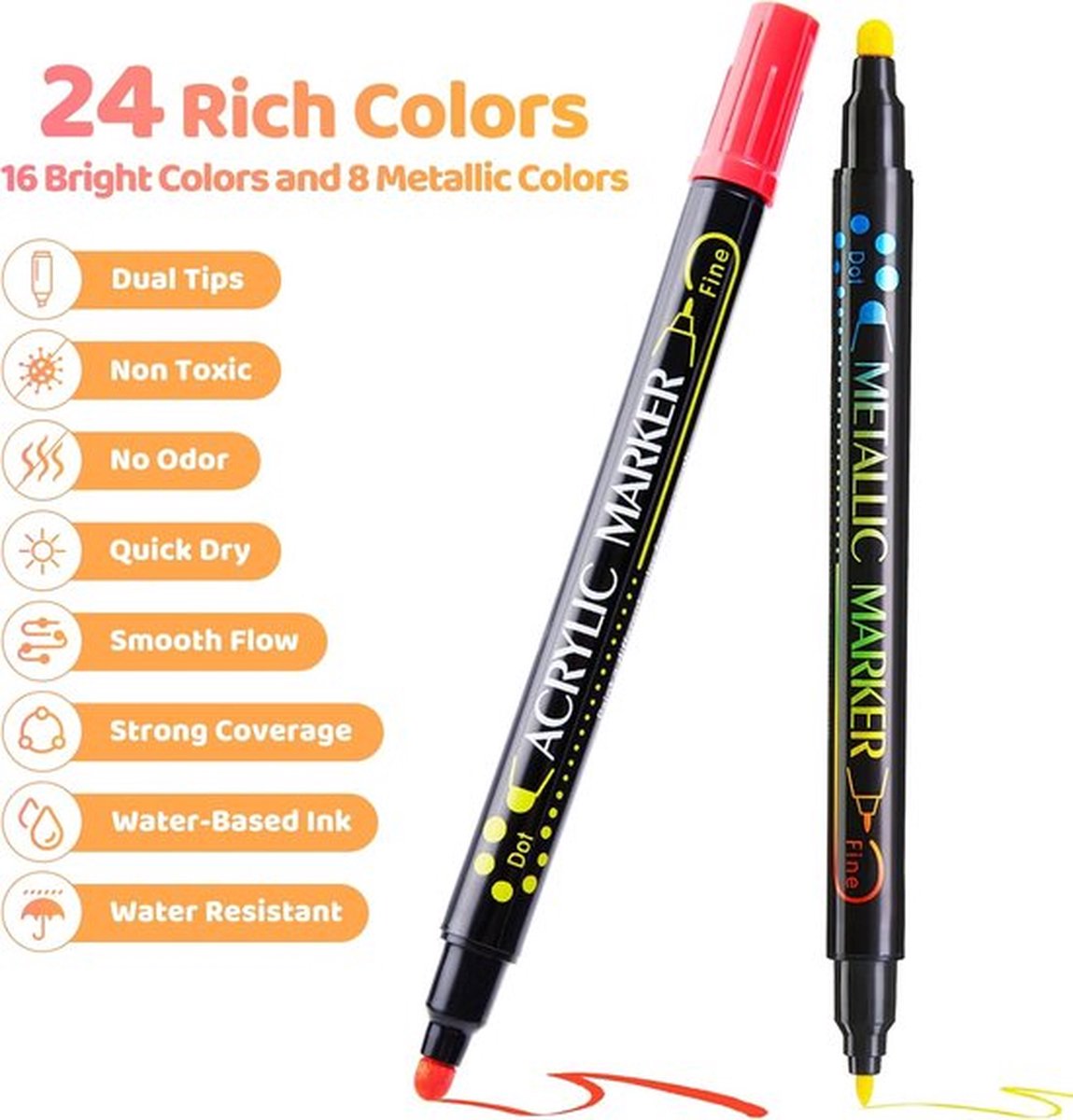 Veuillez conserver votre motif pendant 24 heures avant le lavage, utilisez de l'eau froide pour le lavage. Choix de couleurs vives : profitez de 24 couleurs spécifiques au tissu pour répondre à tous vos besoins de conception. Stylo Feutre HOMY ARTY Marqueur De Peinture - 15mm Pointe, Stylos À Peinture Imperméables Et Permanents, Marqueurs Graffiti Pour Pierres, Panneaux, Marqueurs D'affiches Pour Calligraphie (4 Couleur Acrylic Paint Marker Que vous décoriez des t-shirts, des sacs en toile ou d'autres tissus, nos marqueurs offrent une riche pigmentation et une excellente couverture. Après avoir fixé le tissu avec un dossier sur du carton, tirez doucement le marqueur dans une direction. Design innovant à double pointe : libérez votre créativité avec nos marqueurs uniques à double pointe. Les stylos textiles sont parfaits pour personnaliser les chaussures, jeans, chapeaux, bavoirs et sacs en toile de jute Vos créations se distingueront par des couleurs vives, ce qui rend ces marqueurs indispensables pour tout projet d'artisanat. Sécher naturellement, pas de repassage ni de chaleur nécessaire. Ce marqueur de tissu polyvalent est idéal pour créer des motifs vibrants sur du coton, du polyester et d'autres textiles. Utilisez-le pour personnaliser les sacs fourre-tout, les nappes et les chaussures en toute confiance, grâce à sa fonction lavable. Convient pour la maison, l'extérieur et l'industrie, il peut également être utilisé sur des surfaces en céramique pour les techniques... Ne vous inquiétez plus des lignes irrégulières ou des taches : ces marqueurs sont le matériau artisanal que vous recherchez. Feutre Posca NICETY 32 Couleurs Feutres Acryliques - Arqueurs à Double Pointe Pinceau Pour Peinture Sur Marqueur Pour Tissus N'oubliez pas de vérifier que le capuchon du stylo est bien fermé. Veuillez d'abord envoyer un message sur une petite zone avant de peindre (l'affichage de couleur peint sur différents tissus n'est pas exactement le même). La pointe fine est parfaite pour les détails complexes, tandis que la pointe biseautée est idéale pour les grandes zones de peinture. Veuillez ne pas laisser la plume au même endroit trop longtemps, cela peut provoquer une circulation sanguine ou des taches de couleur inégales. Cadeau parfait pour les amateurs de créativité : libérez le potentiel créatif des enfants, des adolescents et des adultes avec nos marqueurs pour tissu – un choix de cadeau idéal et unique.