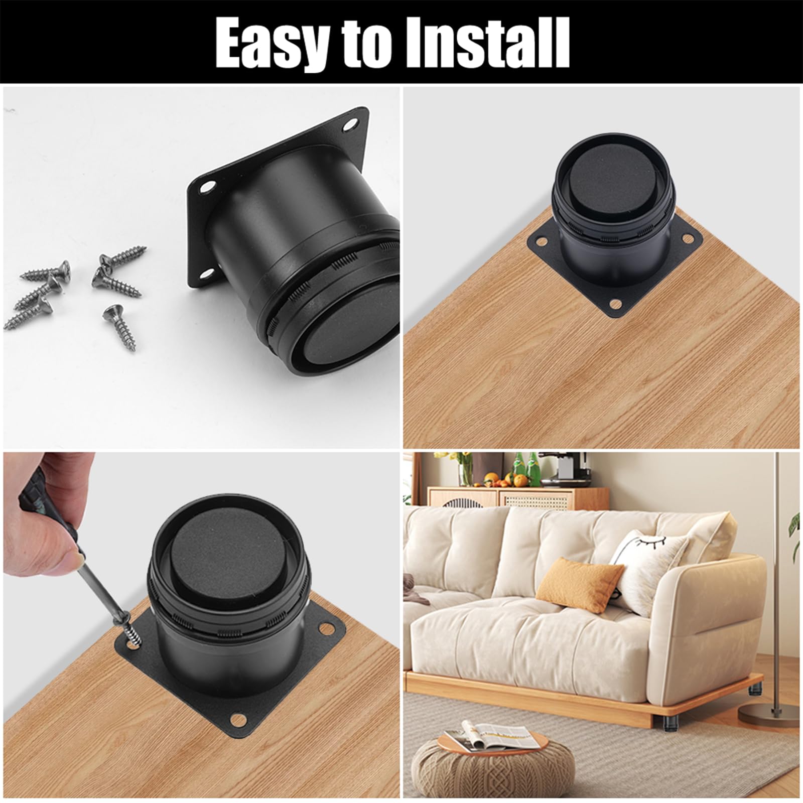 Description du produit 1., Avantages des pieds de meubles Alliage d'aluminium de haute qualité, antirouille, pas facile à déformer ; Base en ABS, protège le sol et réduit le bruit ; Conception réglable, installation flexible ; Forte capacité de charge, capacité de charge maximale de 150 kg ; Les vis de montage sont fournies, ce qui facilite l'installation ; Large éventail d'utilisations, peut être utilisé pour toutes sortes de meubles ; 2., Spécifications Nom : pieds de meubles Matériau : alliage d'aluminium + ABS Capacité de charge : 150kg (4pcs) Couleur : noir Taille : 50mm/1., 96in x 50mm/1., 96in 3., Contenu de l'emballage : 8 x pieds de meubles 12 x vis Avertissement De Sûreté Attention : la capacité de charge maximale est de 150 kg pour 4 pieds de meubles. La capacité de charge maximale de 4 Pieds de Meubles Réglables est de 150 kg. Matériau de Haute Qualité: Les pieds de meubles sont fabriqués en alliage d'aluminium de haute qualité, avec un revêtement anticorrosion sur la surface, étanche à l'eau et à l'humidité, résistant à la corrosion et à la rouille, ne se déformant pas facilement, robuste et durable. Pied réglable - Emuca - Réglable 98-140 mm - Plastique - Noir - Lot de... Matériau: Acier inoxydable durable plastique; Facile à installer, Conception unique de hauteur réglable. Les pied de meuble permettent en plus de compenser... Pieds De Meubles Réglable 12 Pièces Pied Reglable Pour Meuble,M8 X 50 Mm Pied Reglable,Inoxydable Pied Pour Meuble Veuillez respecter la limite de poids pour assurer la stabilité et la sécurité de vos meubles. SOTECH Lot de 8 pieds de meuble GOLF III 50 mm Pied coulissant Patins Facile à Installer: Les pieds de meuble sont fournis avec des vis de montage, l'installation est donc très simple et facile, il suffit de connecter les pieds de meuble avec le bas du meuble, puis de visser les vis dans le meuble pour fixer les pieds de meuble au bas du meuble, et l'installation peut alors être terminée rapidement. Conception Réglable: La hauteur des réglables meubles est de 50mm/1., 96in, convenant à la plupart des meubles, les pied meuble noir sont ajustables, la longueur ajustable est de 0-15mm, vous pouvez l'ajuster à la hauteur que vous sentez confortable selon vos besoins. Les pieds de meuble peuvent également être appliqués à n'importe quel meuble dont vous avez besoin pour ajuster la hauteur, afin de vous aider à perfectionner et à améliorer votre meuble à une hauteur confortable.