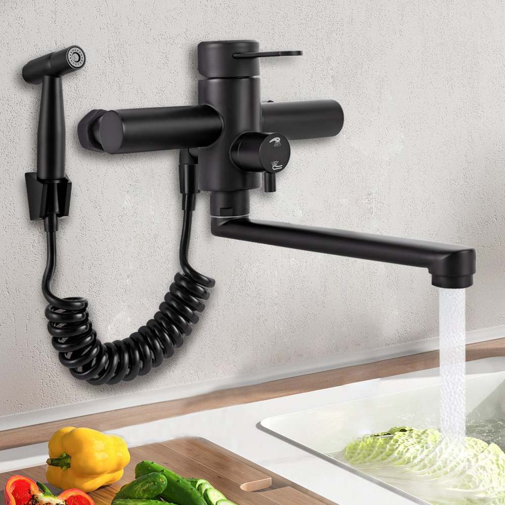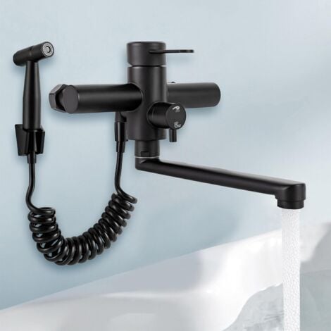 Caractéristiques : Matériau : acier inoxydable. Nombre de poignées : 3. Nombre de trous de montage : 2 Matériau de la bobine : céramique Pression de l'eau : 0,5 mpa. Que ce soit à chaud ou à froid : oui. Dimensions du trou de montage : 2 cm. Hauteur totale : 355 mm. Longueur de sortie d'eau : 150 mm. Distance du trou d'installation Vous pouvez basculer entre les trois types en appuyant sur un bouton. La distance entre le mur et le bec est de 29 cm. Évier De Cuisine Robinet De Cuisine,Robinet Cuisine,Pivotant À 360 Avec Pistolet D'arrosage Fairub Robinet De Cuisine Moderne Avec Pulvérisateur Rétractable Noir Mat, Monocommande à Grande Robinet Mural Robinet de cuisine en acier inoxydable : le corps principal du robinet de cuisine mural est en acier inoxydable avec une surface mate qui présente une excellente résistance à la corrosion et garantit qualité et durabilité. Nous vous aiderons certainement à résoudre le problème et vous donnerons une réponse satisfaisante. ❤Service : si vous avez des questions sur le robinet de cuisine, veuillez nous contacter immédiatement. Si la pression de l'eau est trop élevée, il peut y avoir une dépression locale dans le robinet, ce qui peut provoquer du bruit du robinet. ❤ Débit d'eau moussante : robinet de cuisine mural avec aérateur ABS de qualité supérieure qui n'éclabousse pas. Robinet mural noir, robinet de cuisine mural, de qualité alimentaire, avec pistolet... Robinet mural pivotant : avec une buse pivotante à 360° et un bec de 23 cm de long, le pistolet supplémentaire facile d'entretien offre encore plus de flexibilité et convient à tous les lavabos.